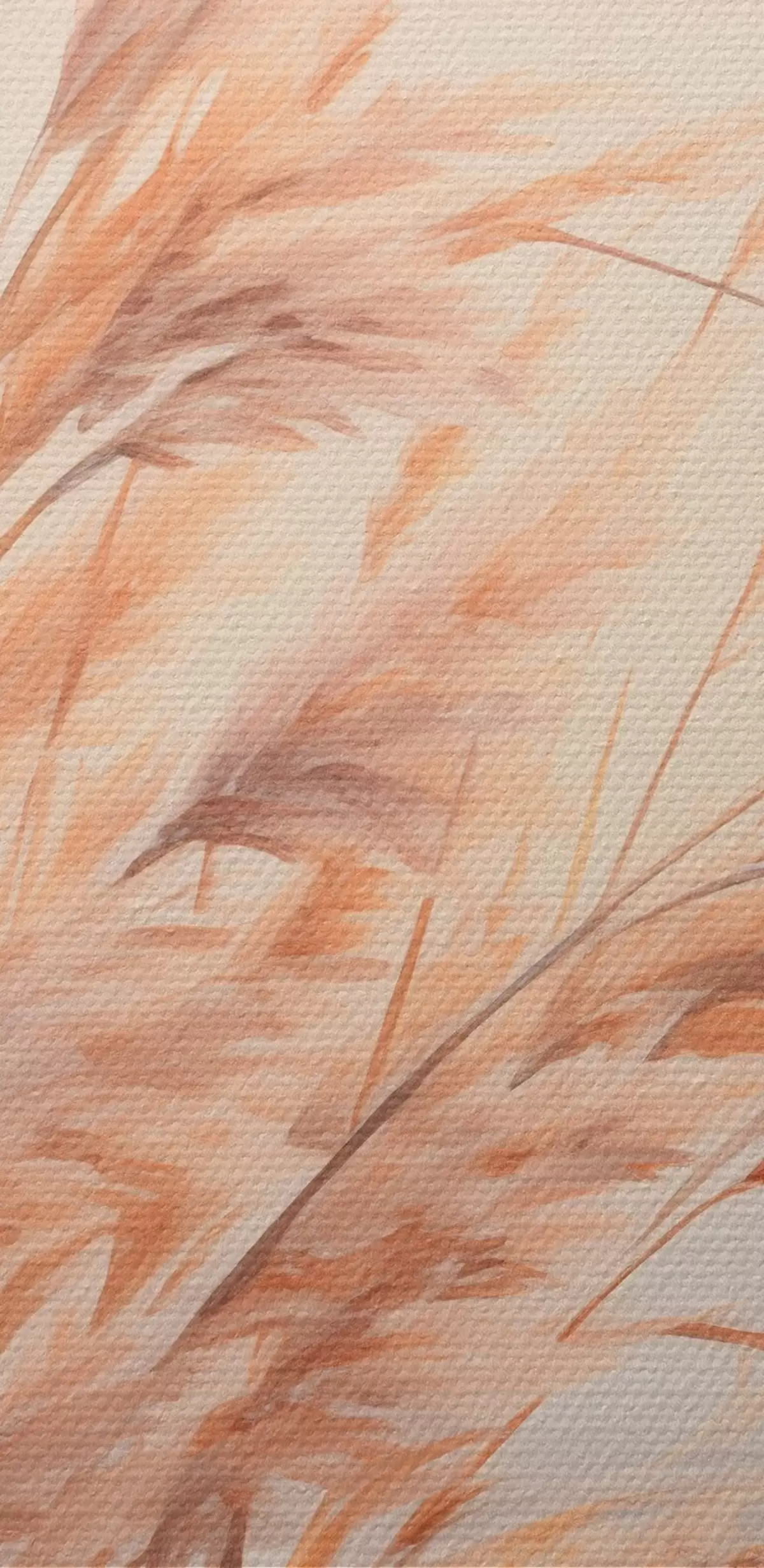 Immagine Erba della Pampa con una tavolozza di colori arancione pastello, cielo rosa chiaro, un paesaggio tranquillo Nr r45934