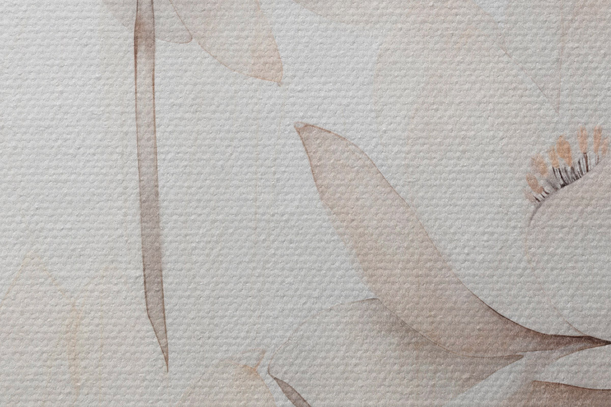Immagine Fiori di loto bianchi con foglie scure, sfondo chiaro, design minimalista Nr r45936