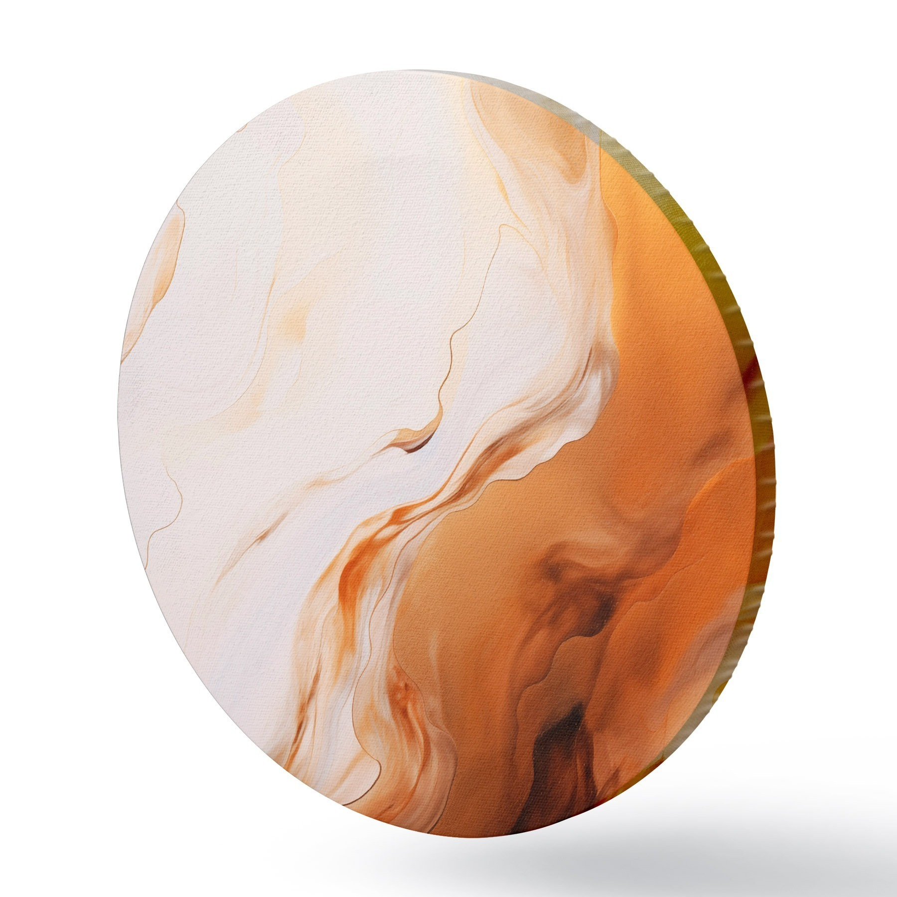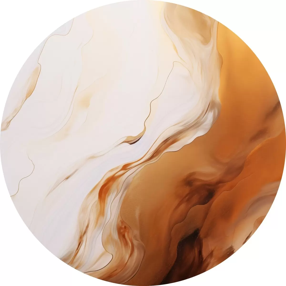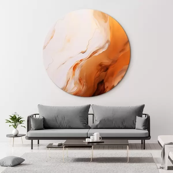 Quadri rotondi Imitazione di pittura astratta con colori bianco e arancione, arte fluida con linee ondulate, arte moderna r45939