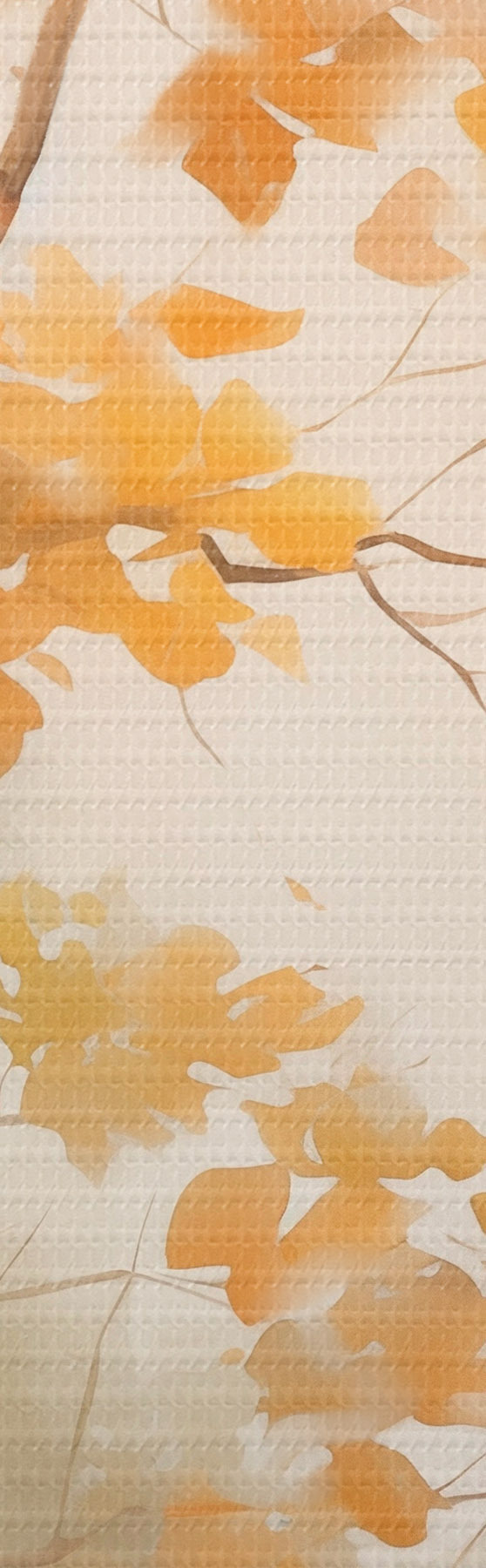 Quadri rotondi Rami di alberi autunnali con foglie arancioni in una foresta illuminata da una luce soffusa r45940