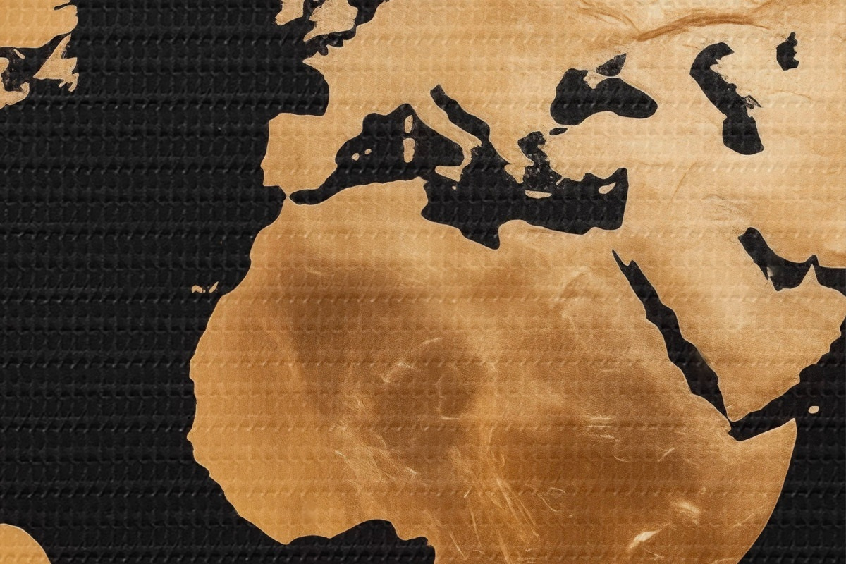Immagine Globo terrestre astratto giallo con texture, pianeta su sfondo nero, arte moderna minimalista Nr r45942
