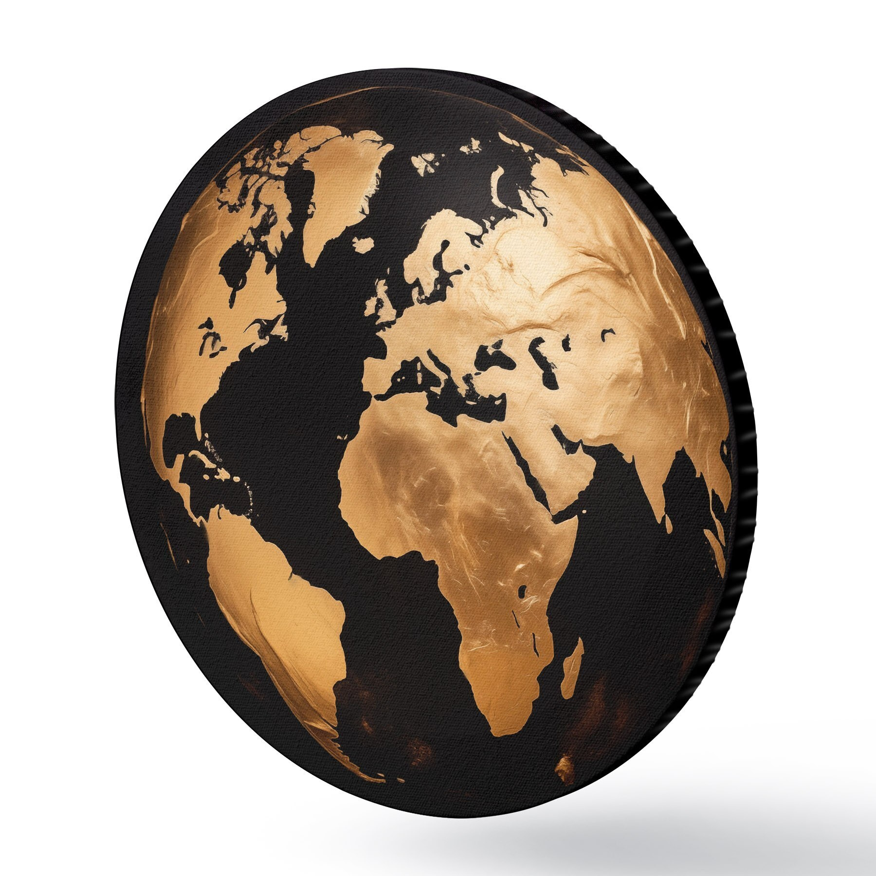 Quadri rotondi Globo terrestre astratto giallo con texture, pianeta su sfondo nero, arte moderna minimalista r45942