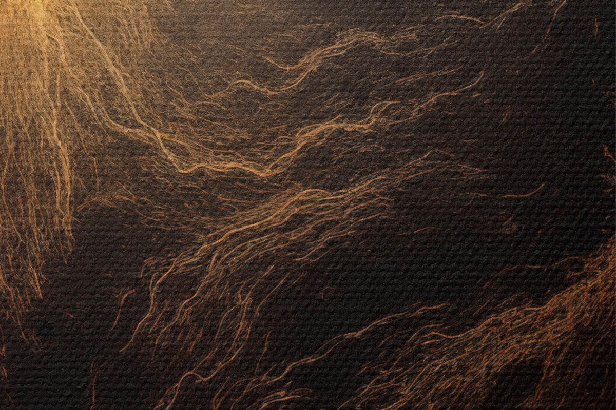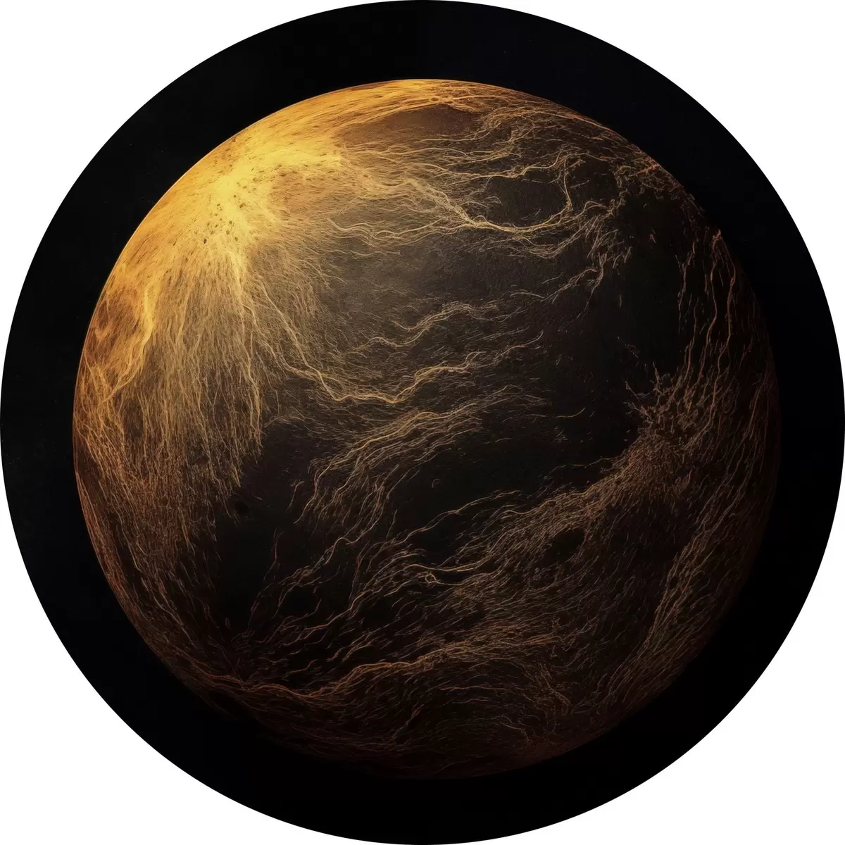 Immagine Pianeta astratto con venature arancioni su sfondo nero, arte moderna minimalista Nr r45943