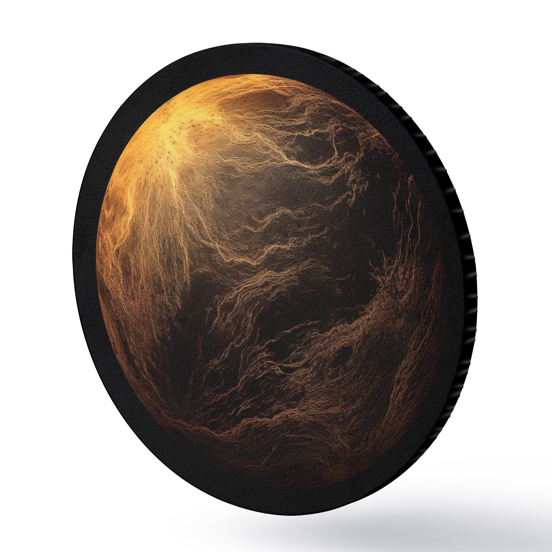 Quadri rotondi Pianeta astratto con venature arancioni su sfondo nero, arte moderna minimalista r45943