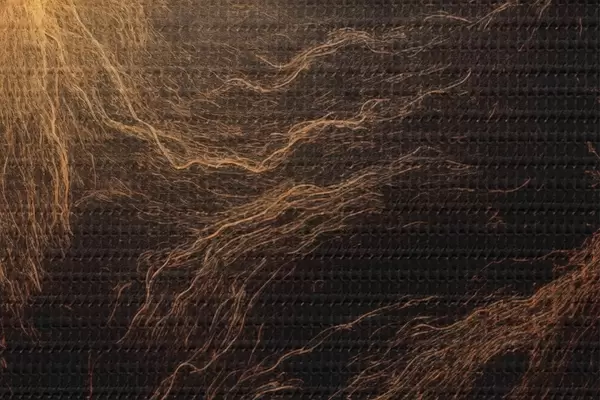 Immagine Pianeta astratto con venature arancioni su sfondo nero, arte moderna minimalista Nr r45943