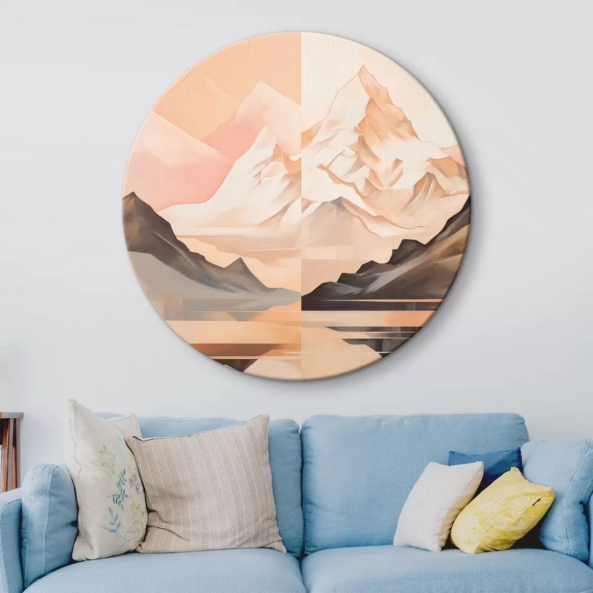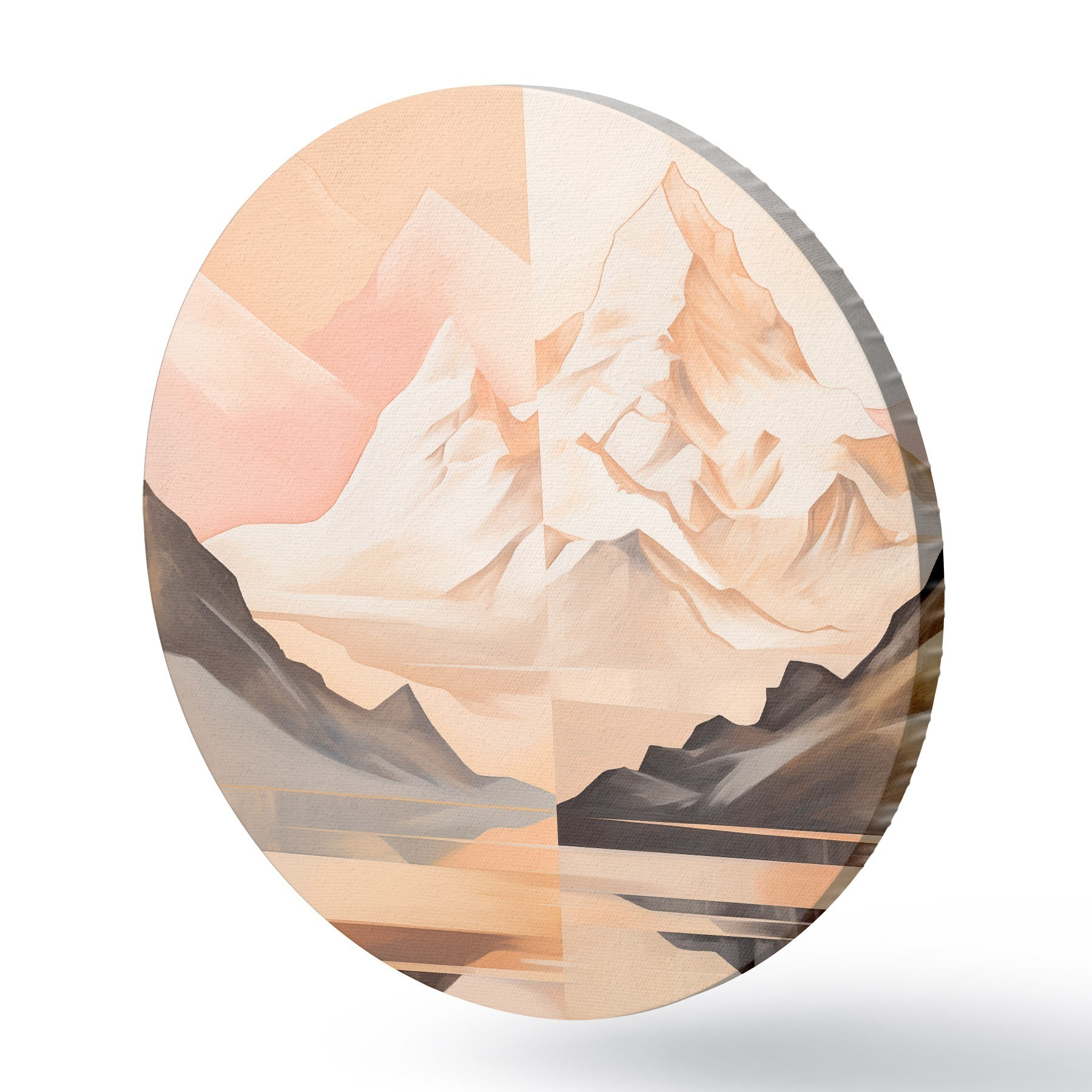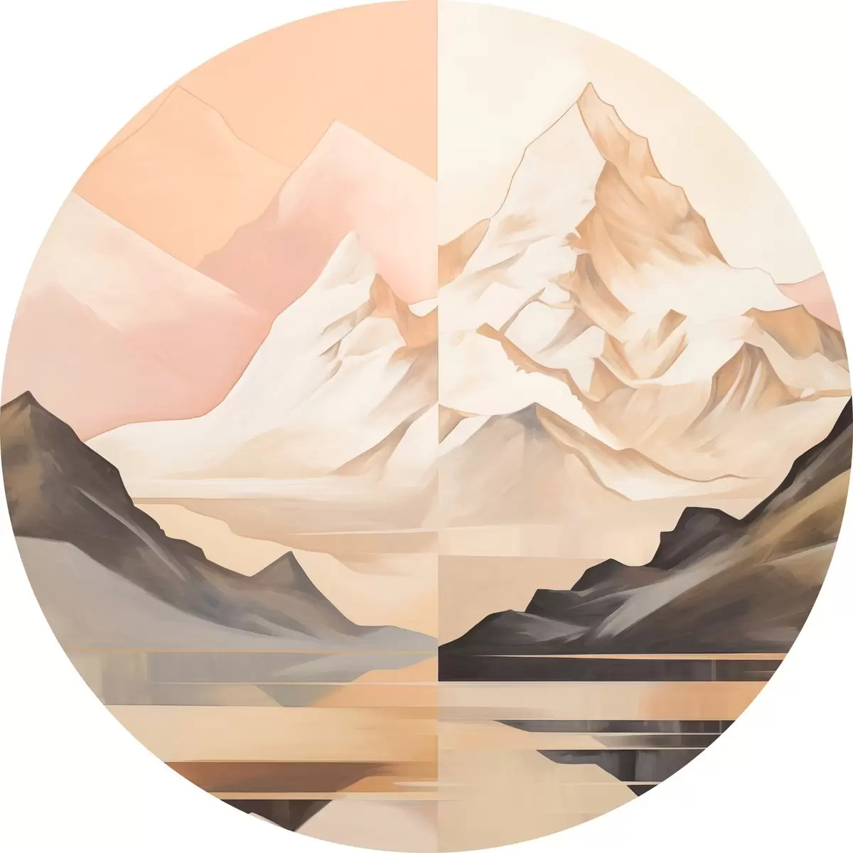 Quadri rotondi Paesaggio astratto con montagne e un lago, colori pastello, stile minimalista r45948