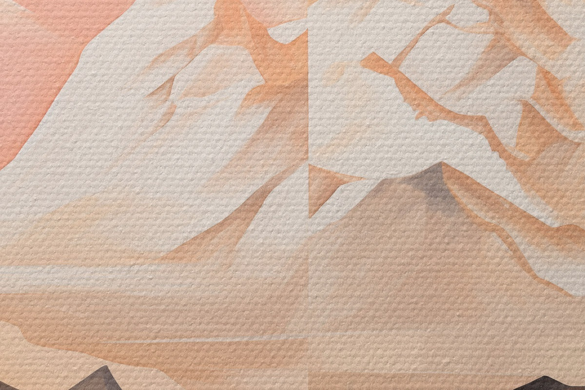 Immagine Paesaggio astratto con montagne e un lago, colori pastello, stile minimalista Nr r45948