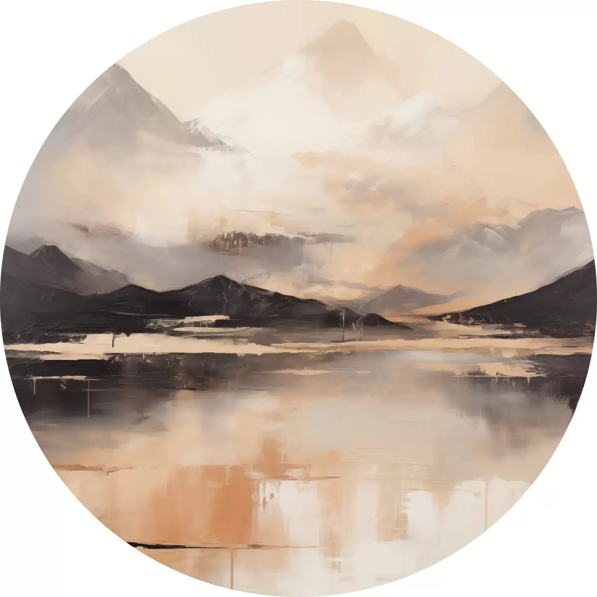 Quadri rotondi Un dipinto con texture paesaggistica che imita montagne e un lago r45950