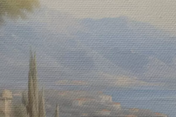 La fine trama dei fili di questa tela ricorda la superficie delle tele degli artisti professionisti.