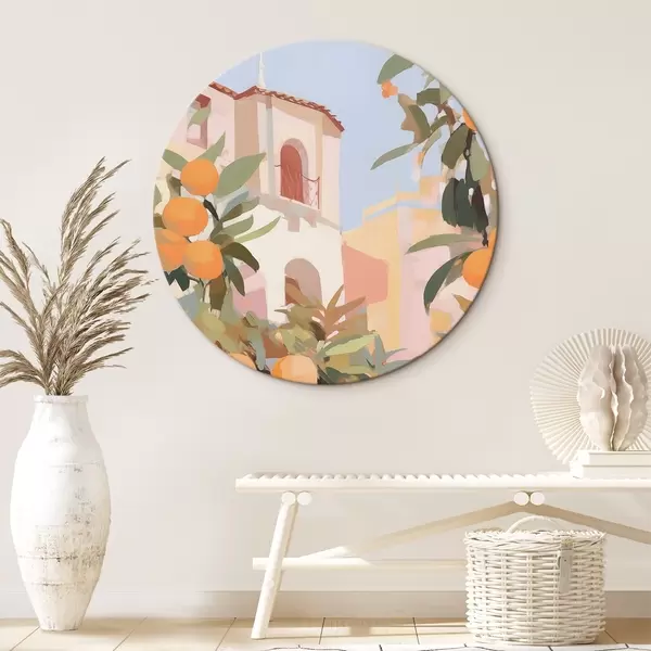 Quadri rotondi Arance su un ramo davanti alla casa r46060