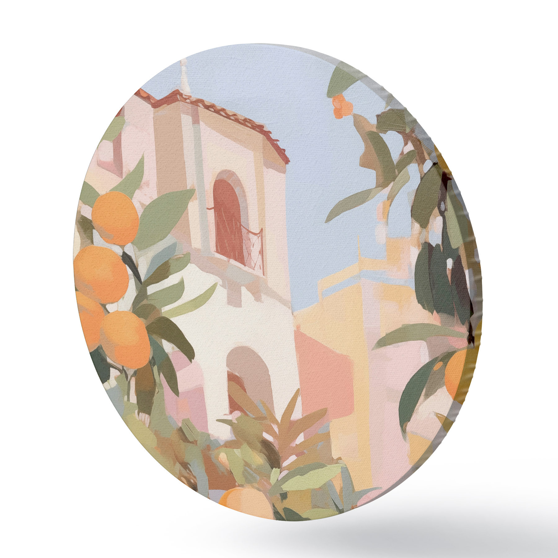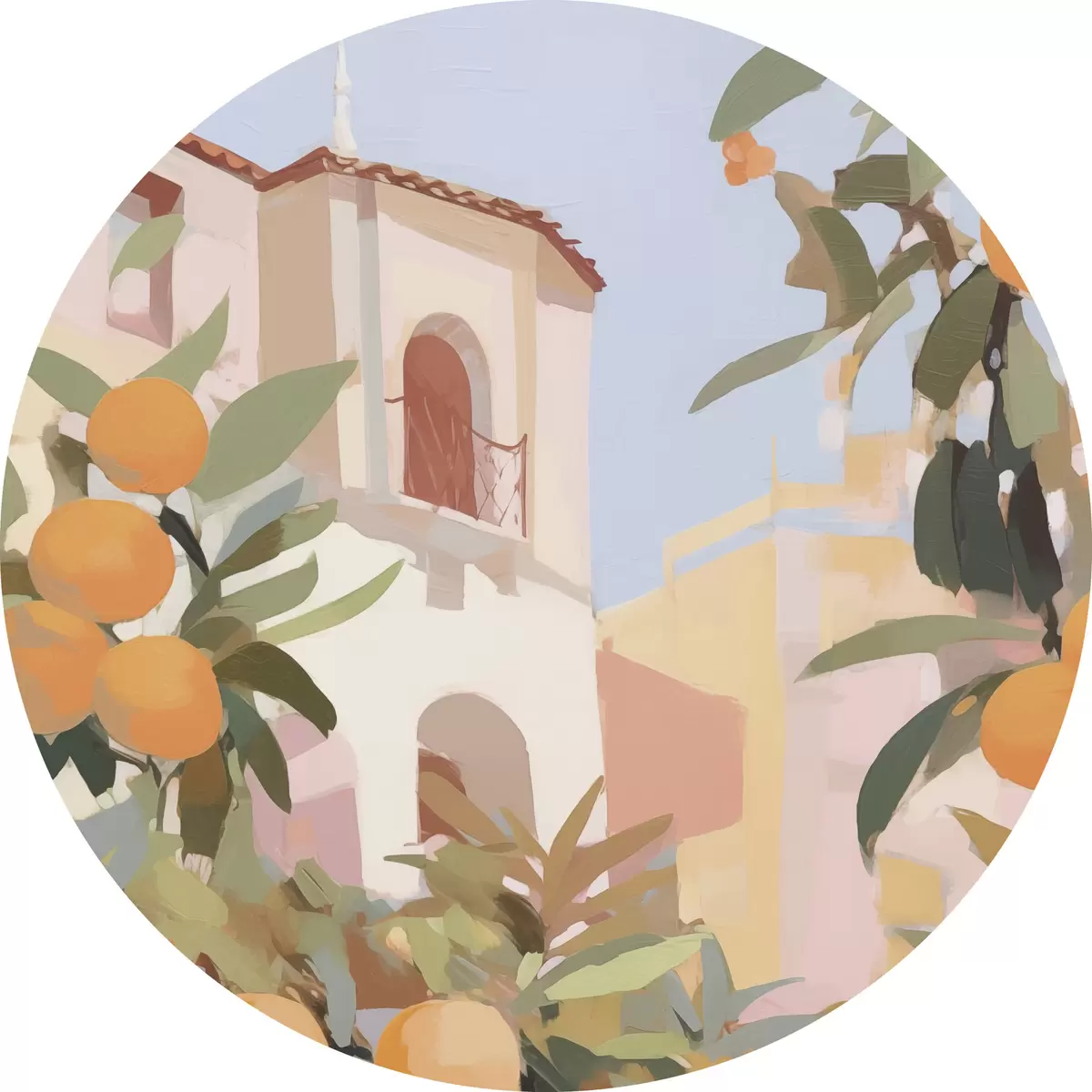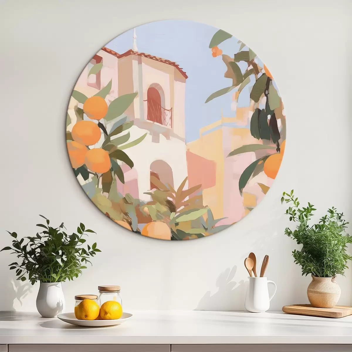 Quadri rotondi Arance su un ramo davanti alla casa r46060