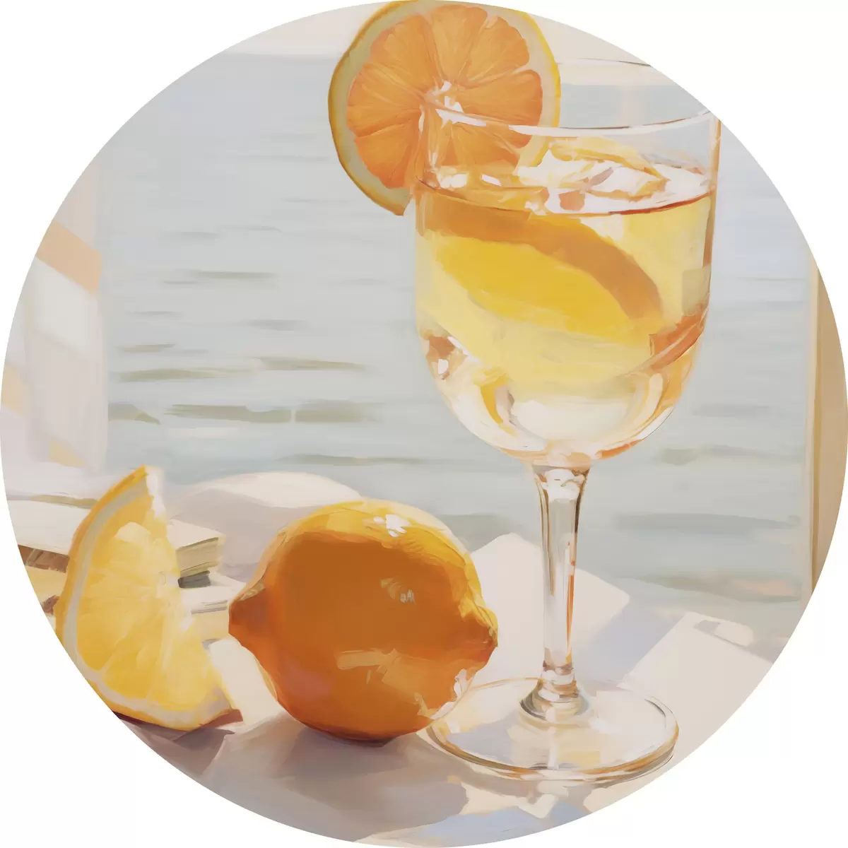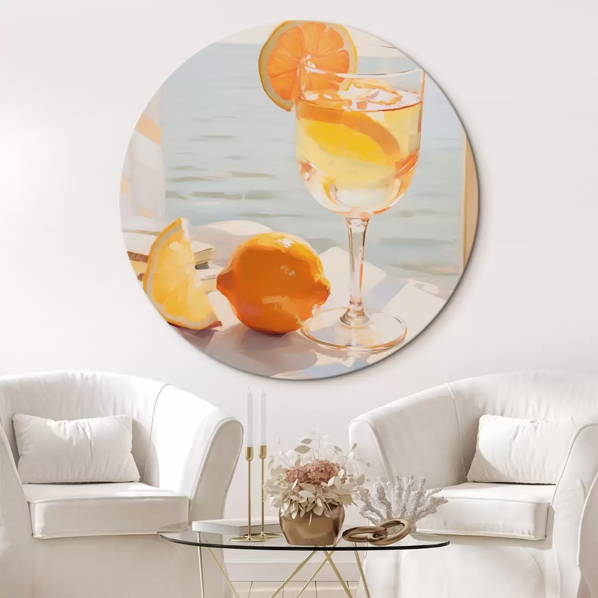 Quadri rotondi Un cocktail in un bicchiere vicino alla finestra r46064