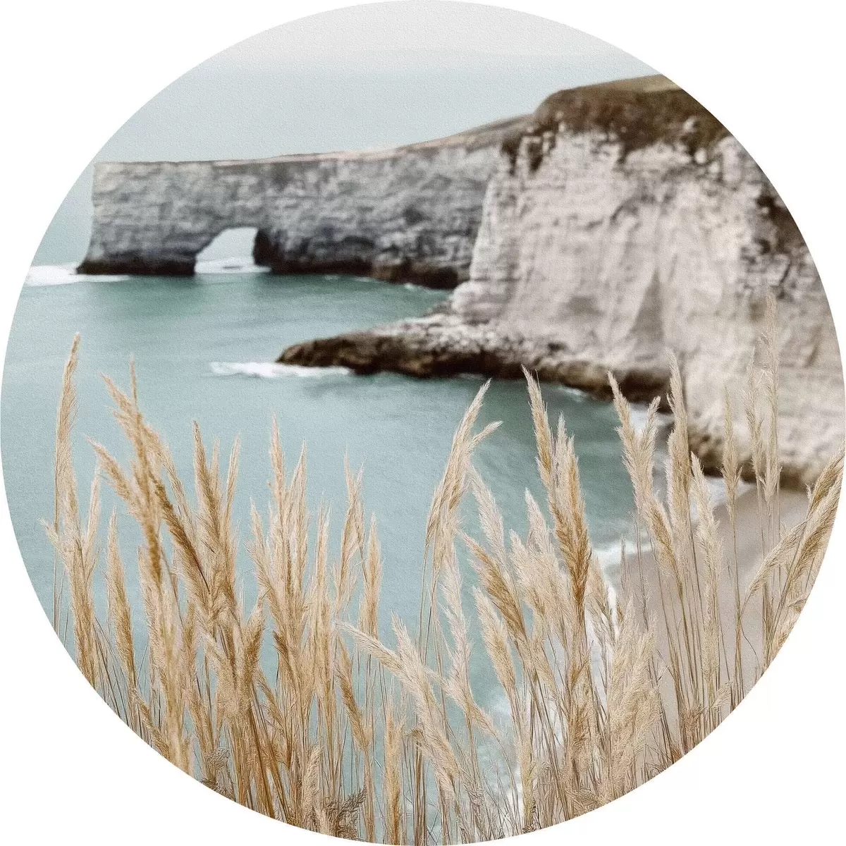 Quadri rotondi Scogliere costiere con canneti in primo piano r46141