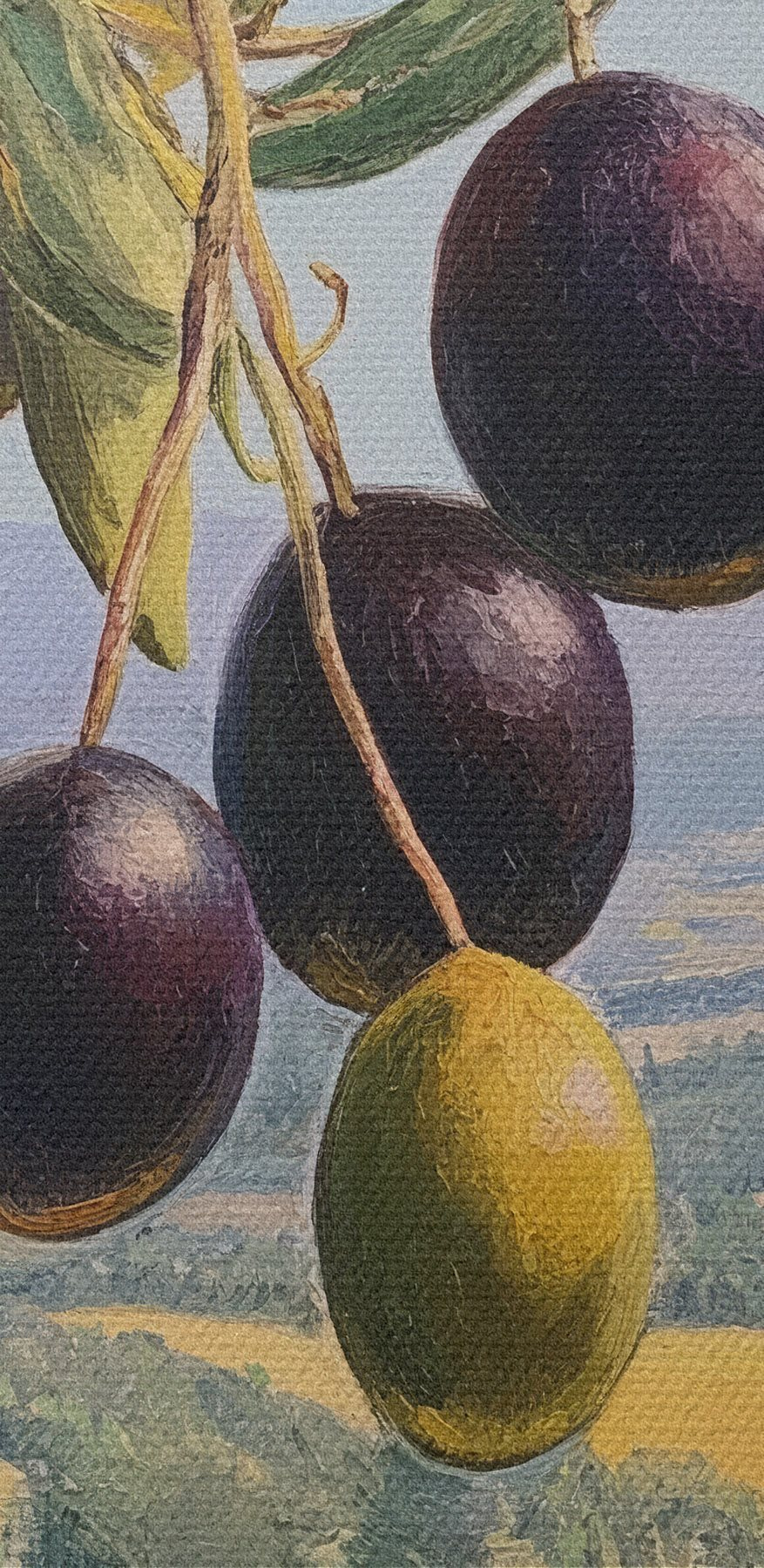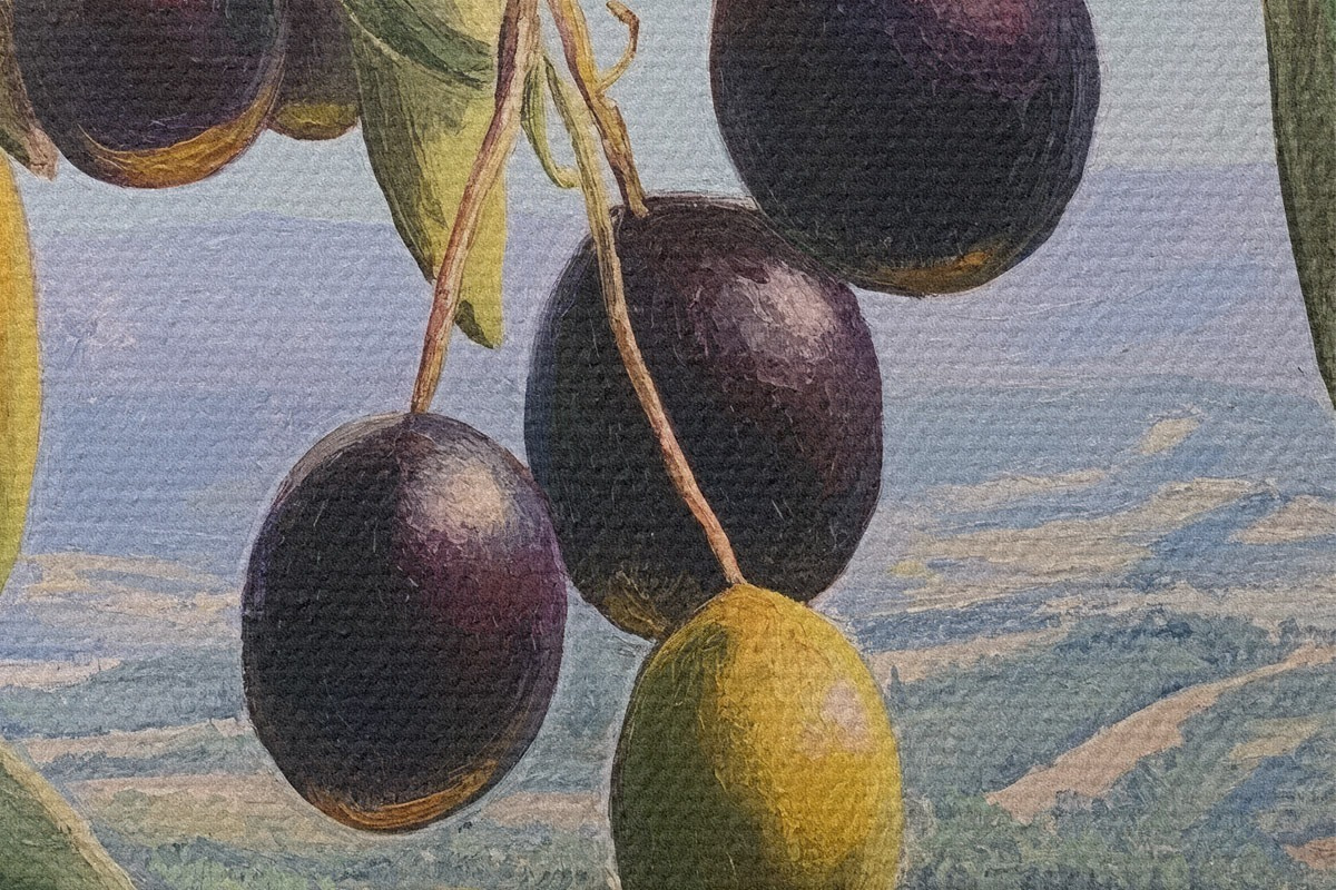 Immagine Ramo d'ulivo con frutti scuri su uno sfondo estivo Nr r46150