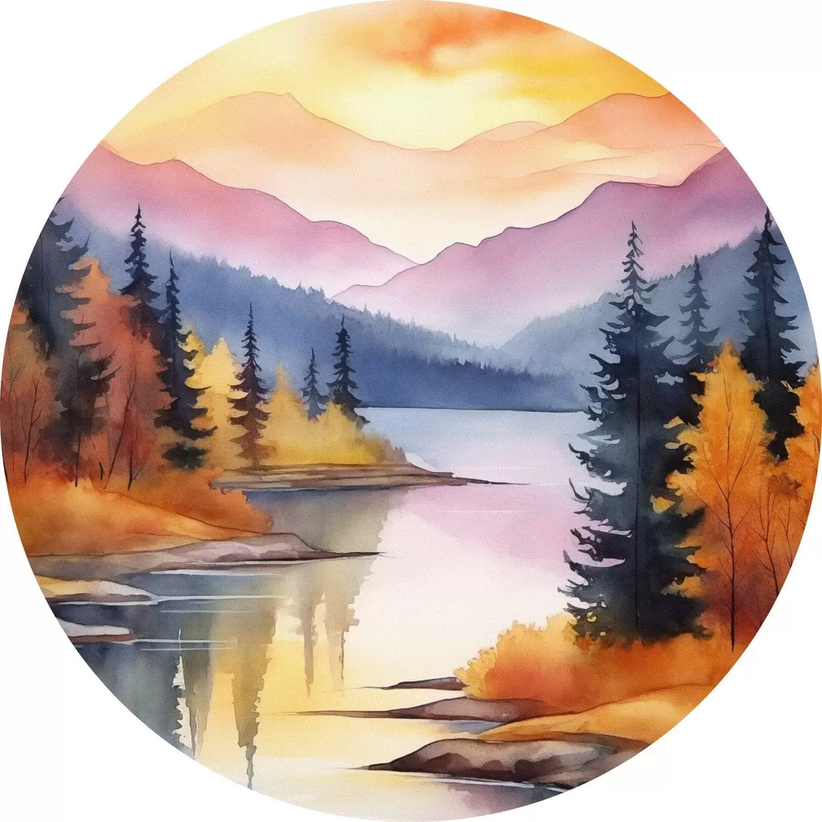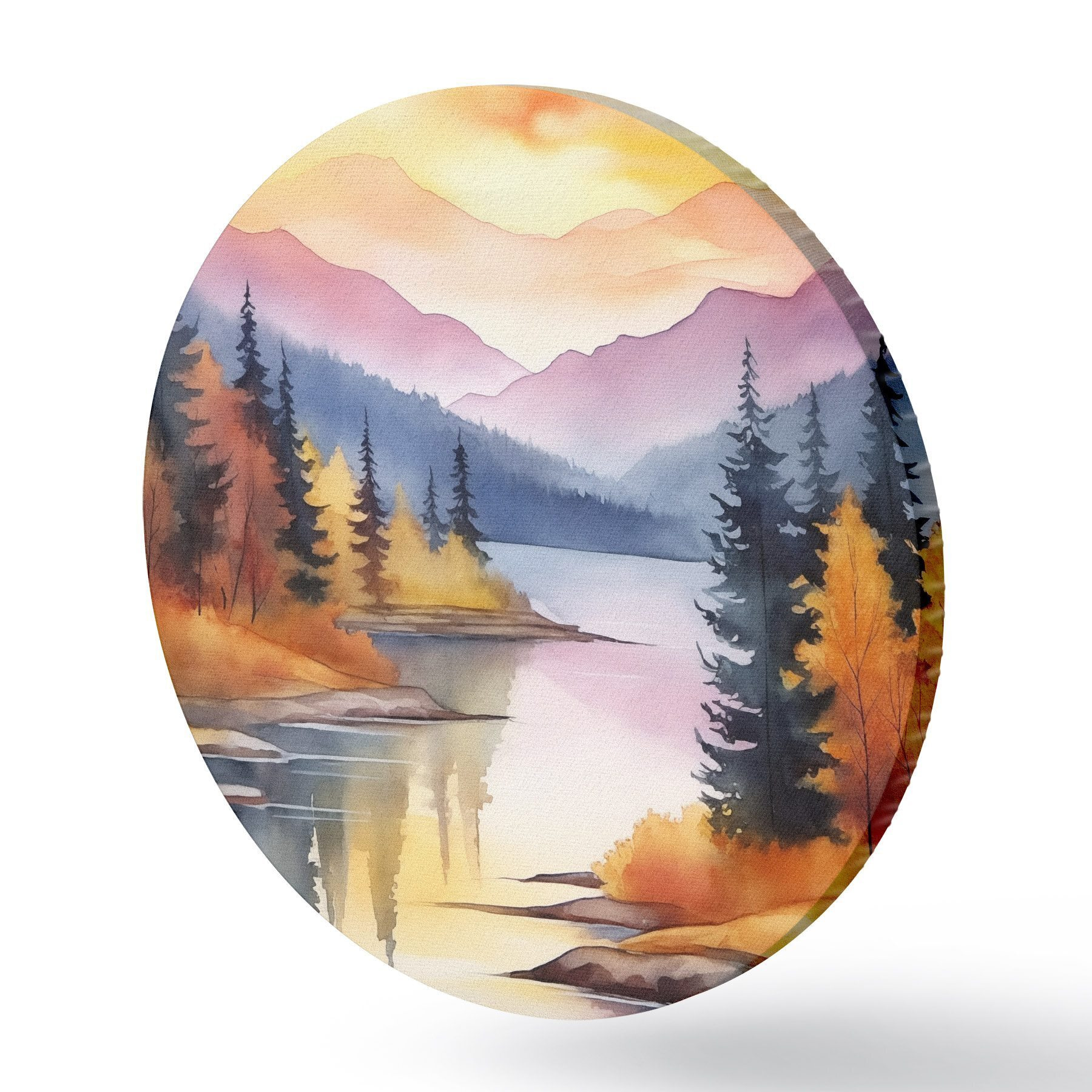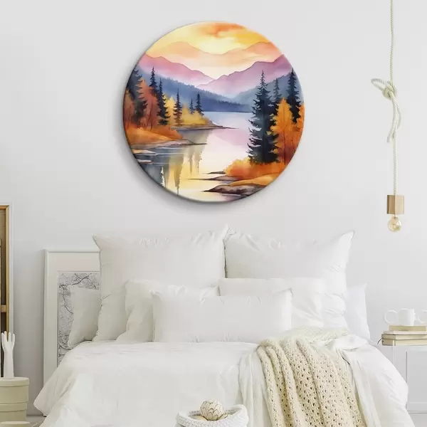 Quadri rotondi Paesaggio autunnale in riva al lago con cielo luminoso r46155