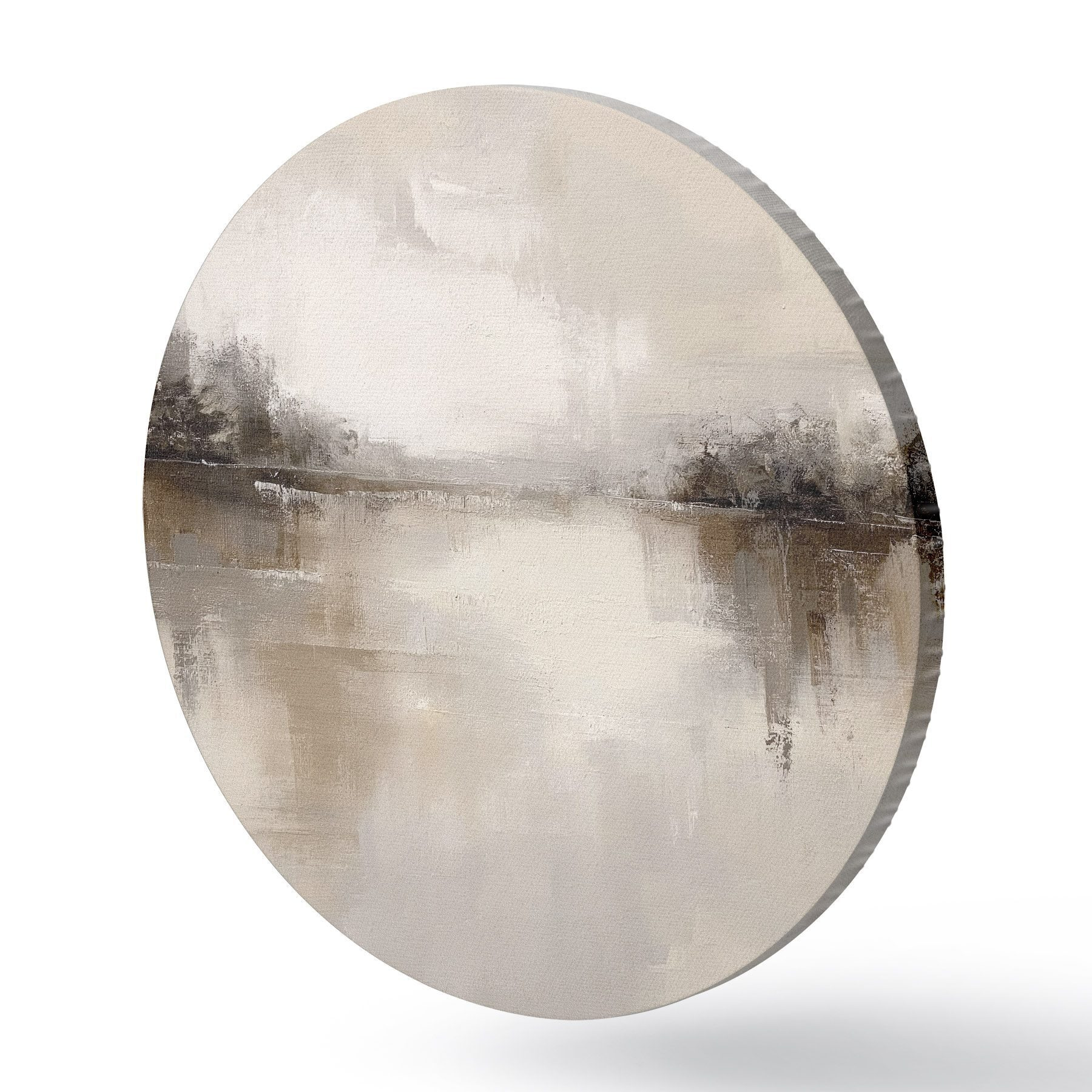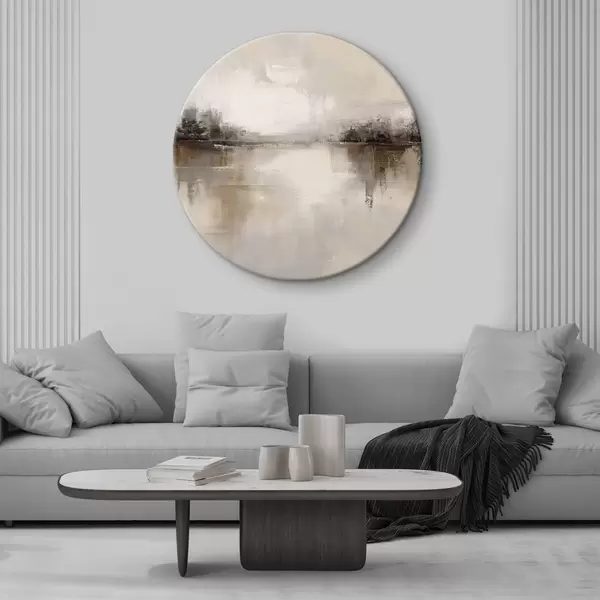 Quadri rotondi Paesaggio morbido con un lago dai toni caldi beige-grigi r46158