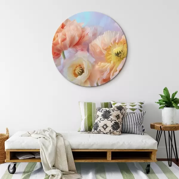 Quadri rotondi Delicati fiori dai toni pastello con luci soffuse r46160