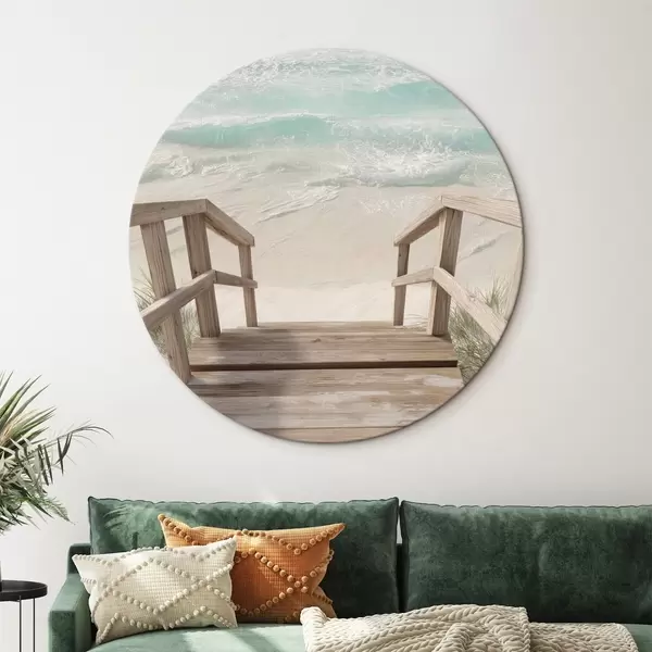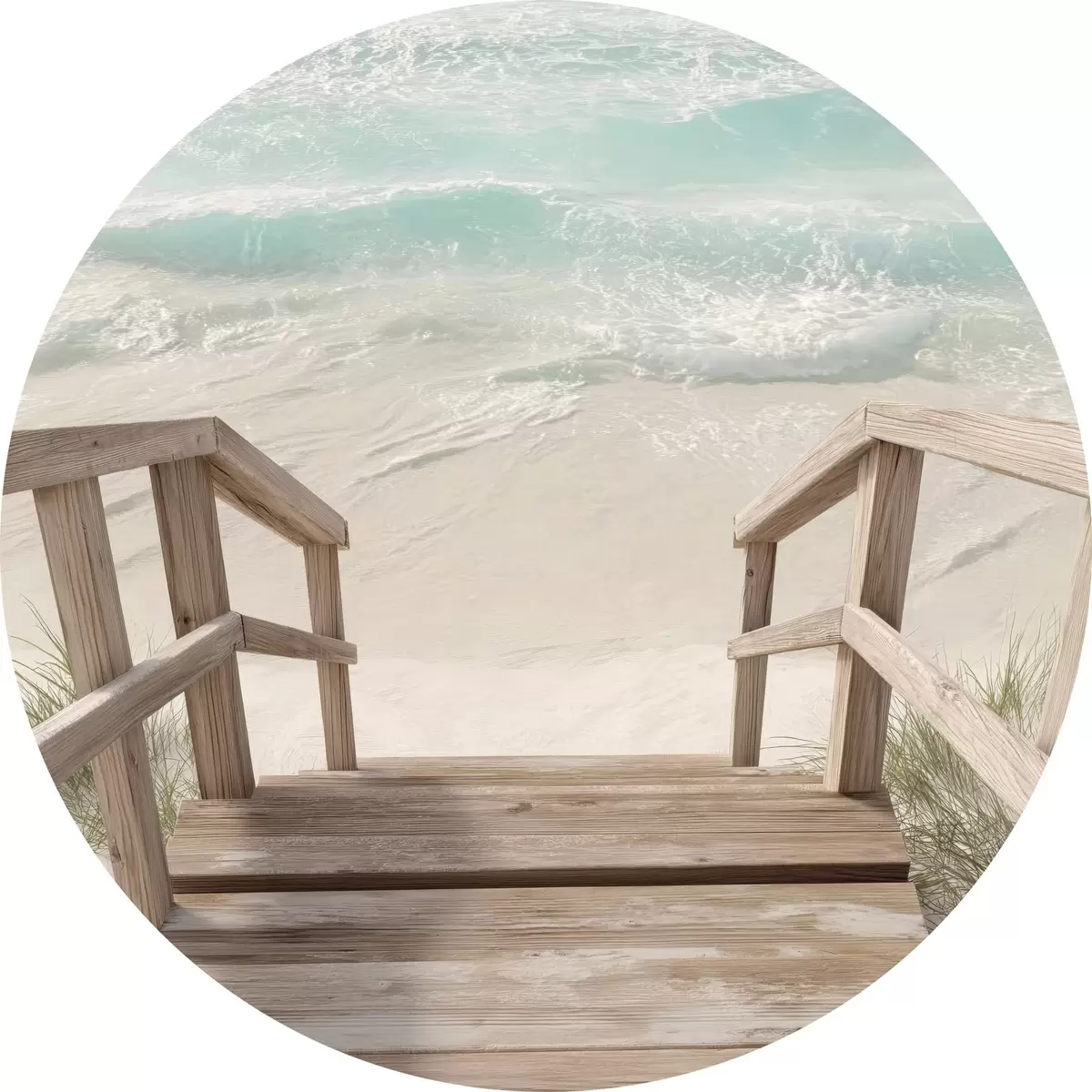 Quadri rotondi Scale in legno che conducono a una spiaggia turchese r46163