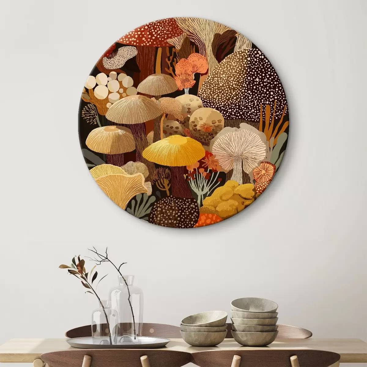 Quadri rotondi Composizione di vari funghi di bosco dai toni caldi r46170
