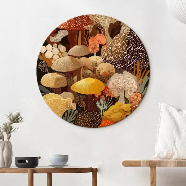 Quadri rotondi Composizione di vari funghi di bosco dai toni caldi r46170