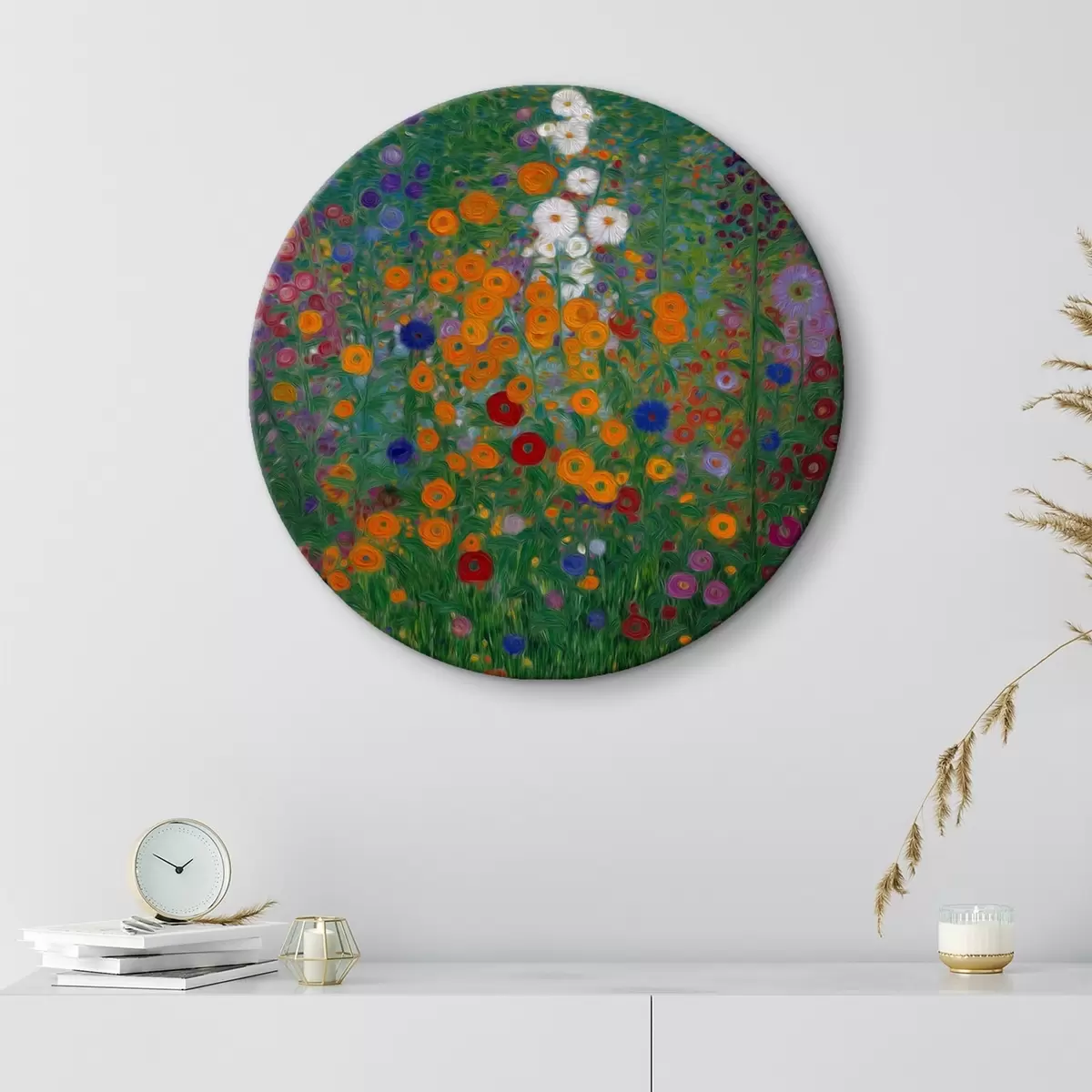 Quadri rotondi Campo fiorito colorato con accenti bianchi r46172