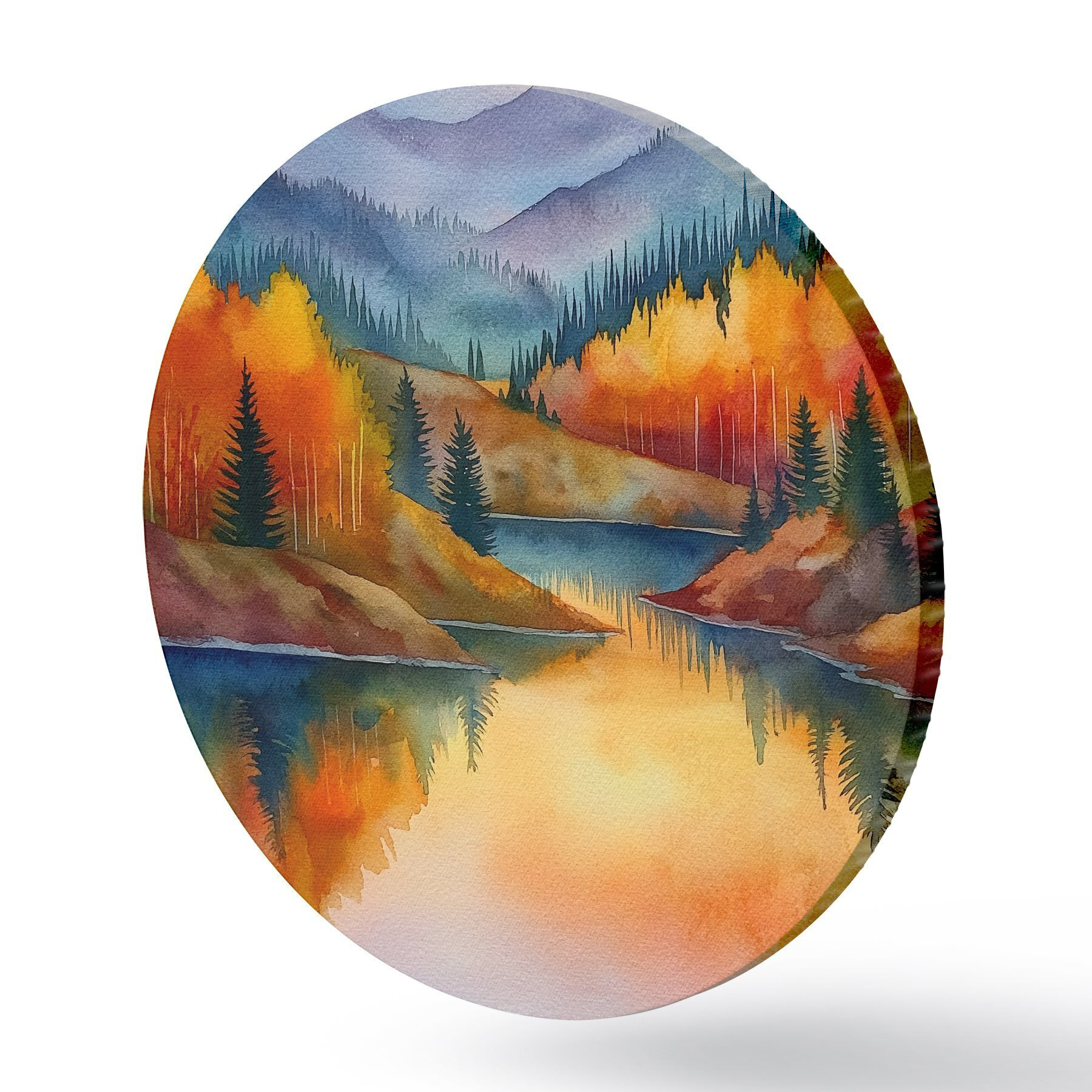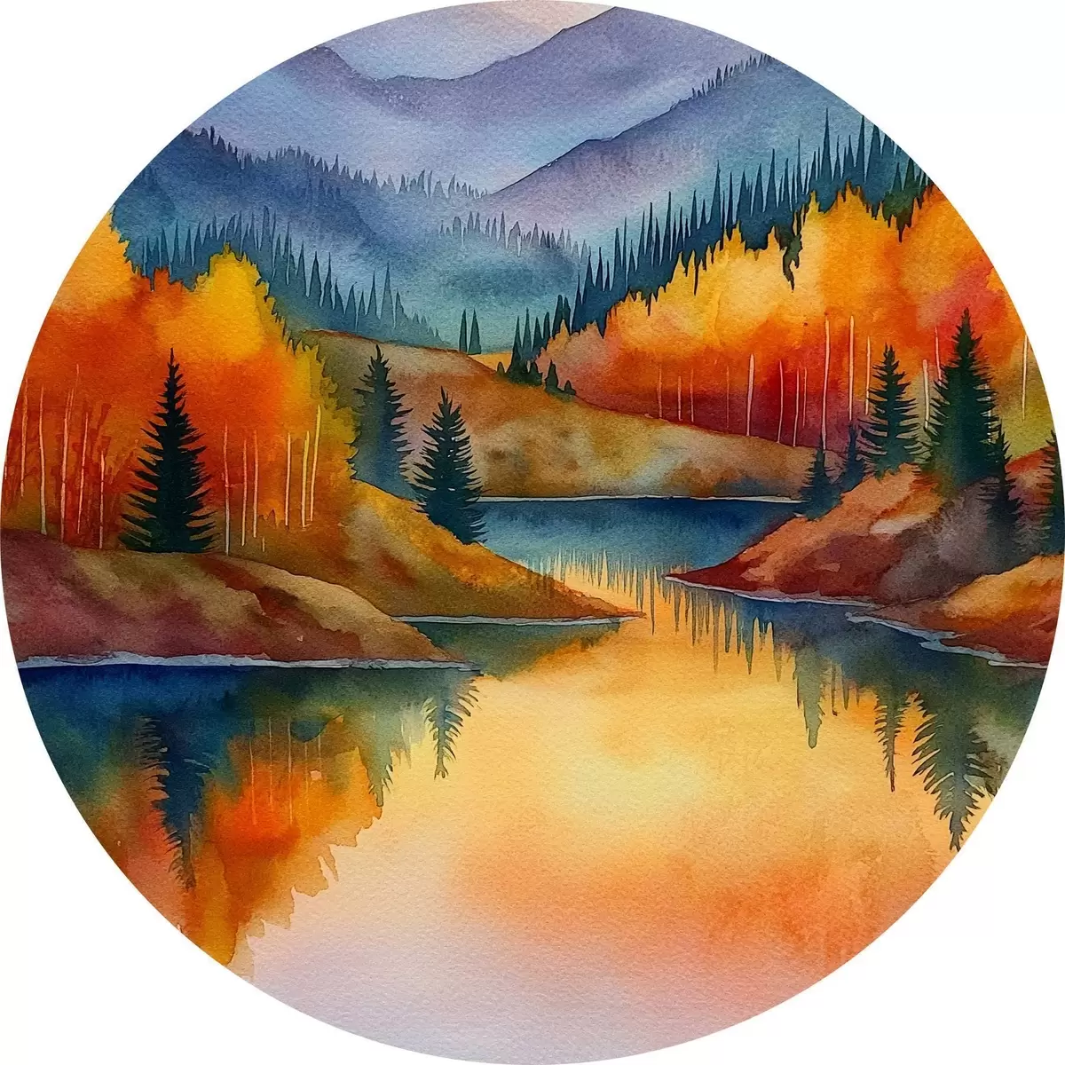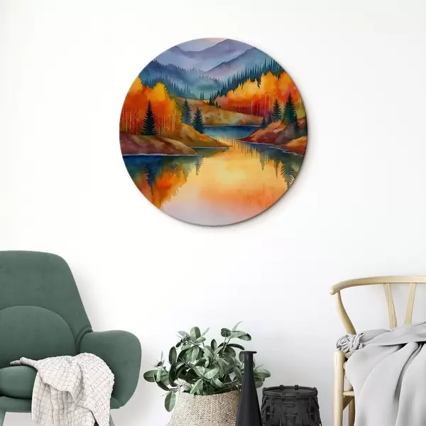 Quadri rotondi Paesaggio autunnale con montagne riflesse in un lago calmo r46174