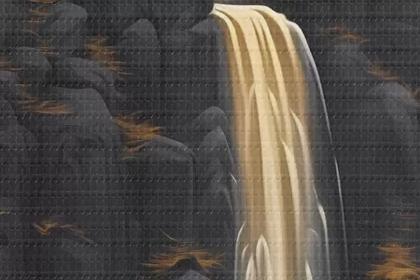 Immagine Paesaggio roccioso con una cascata dai caldi toni del tramonto Nr r46177