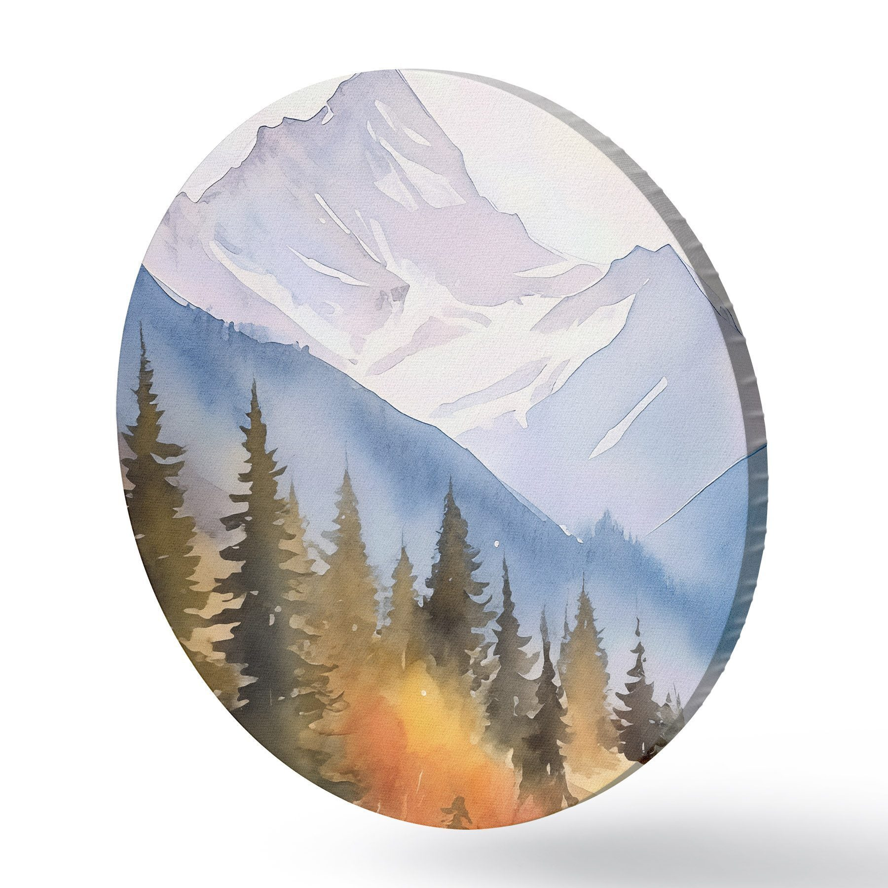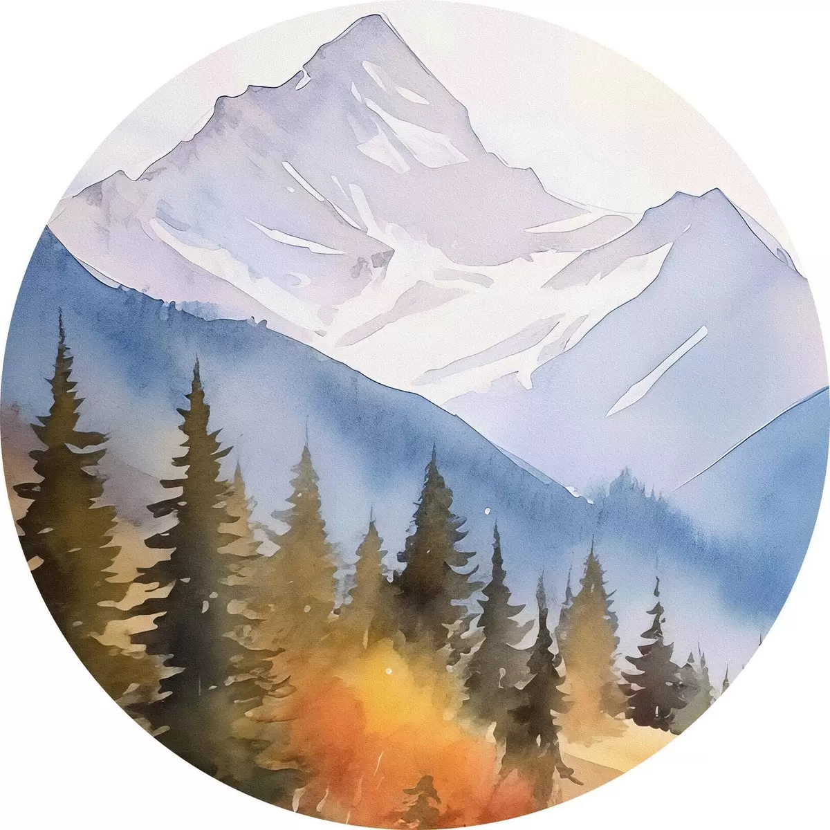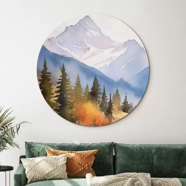 Quadri rotondi Paesaggio montano autunnale con un fiume e una foresta dai colori vivaci r46187