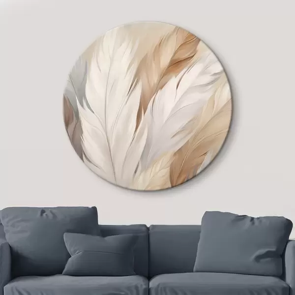 Quadri rotondi Morbide piume nei toni del beige e del grigio r46190