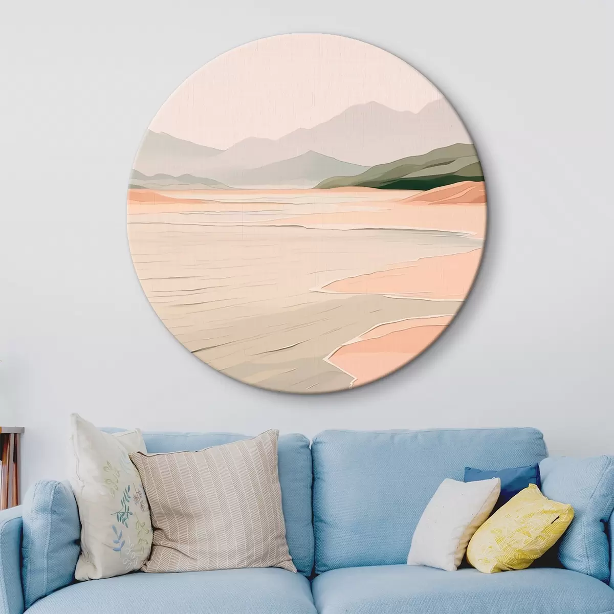 Quadri rotondi Paesaggio minimalista con montagne e costa r46248