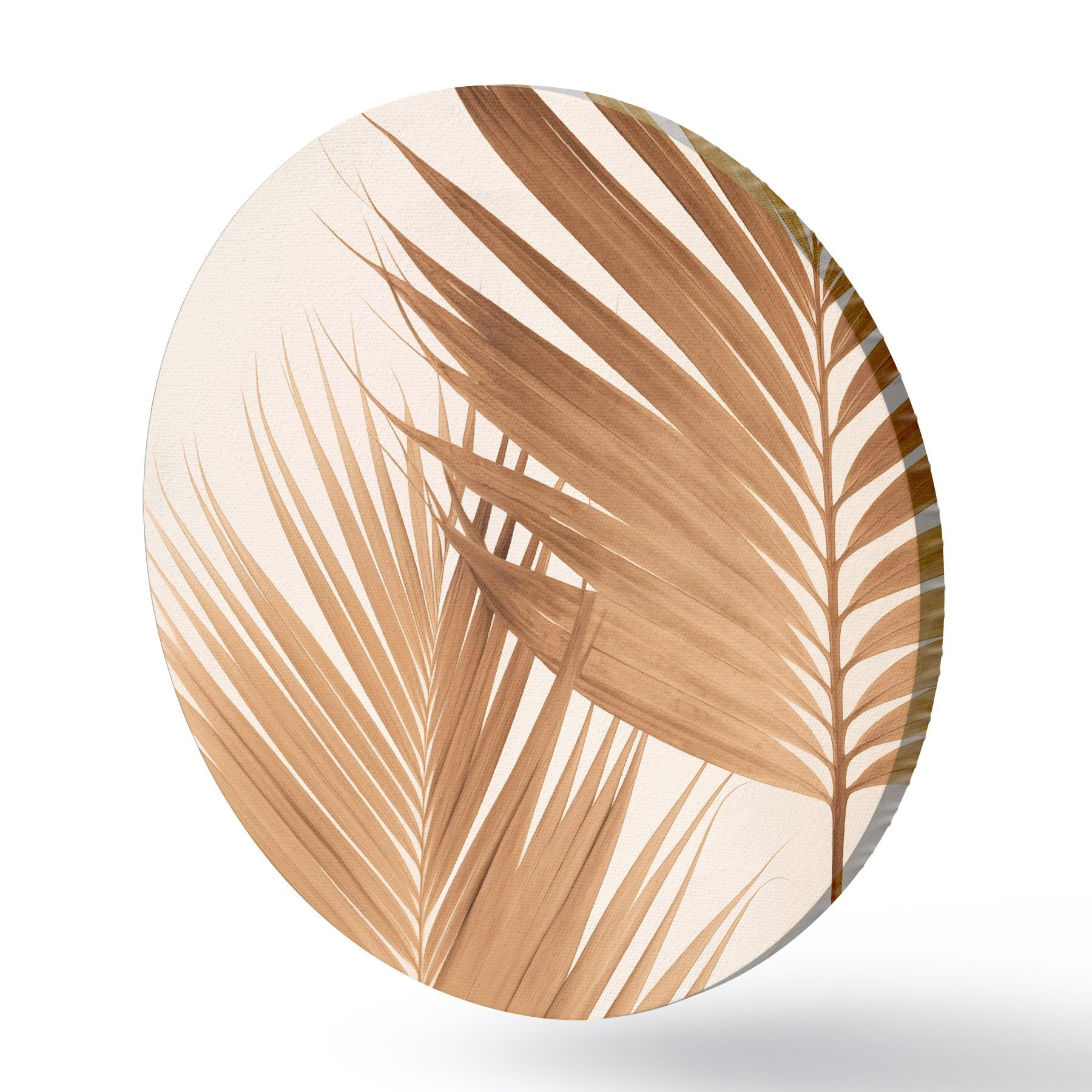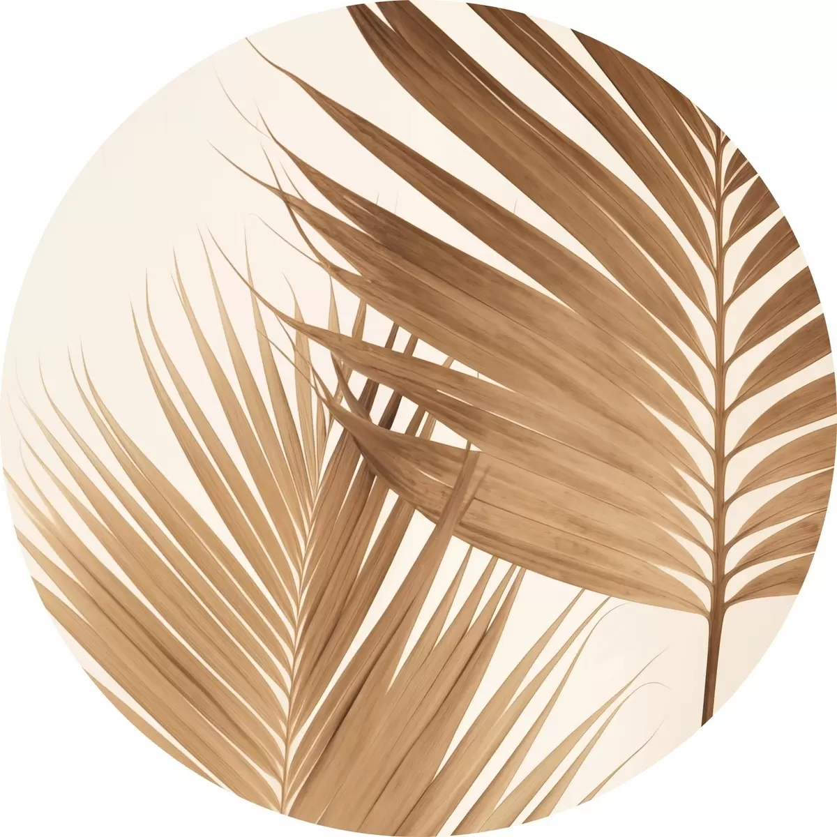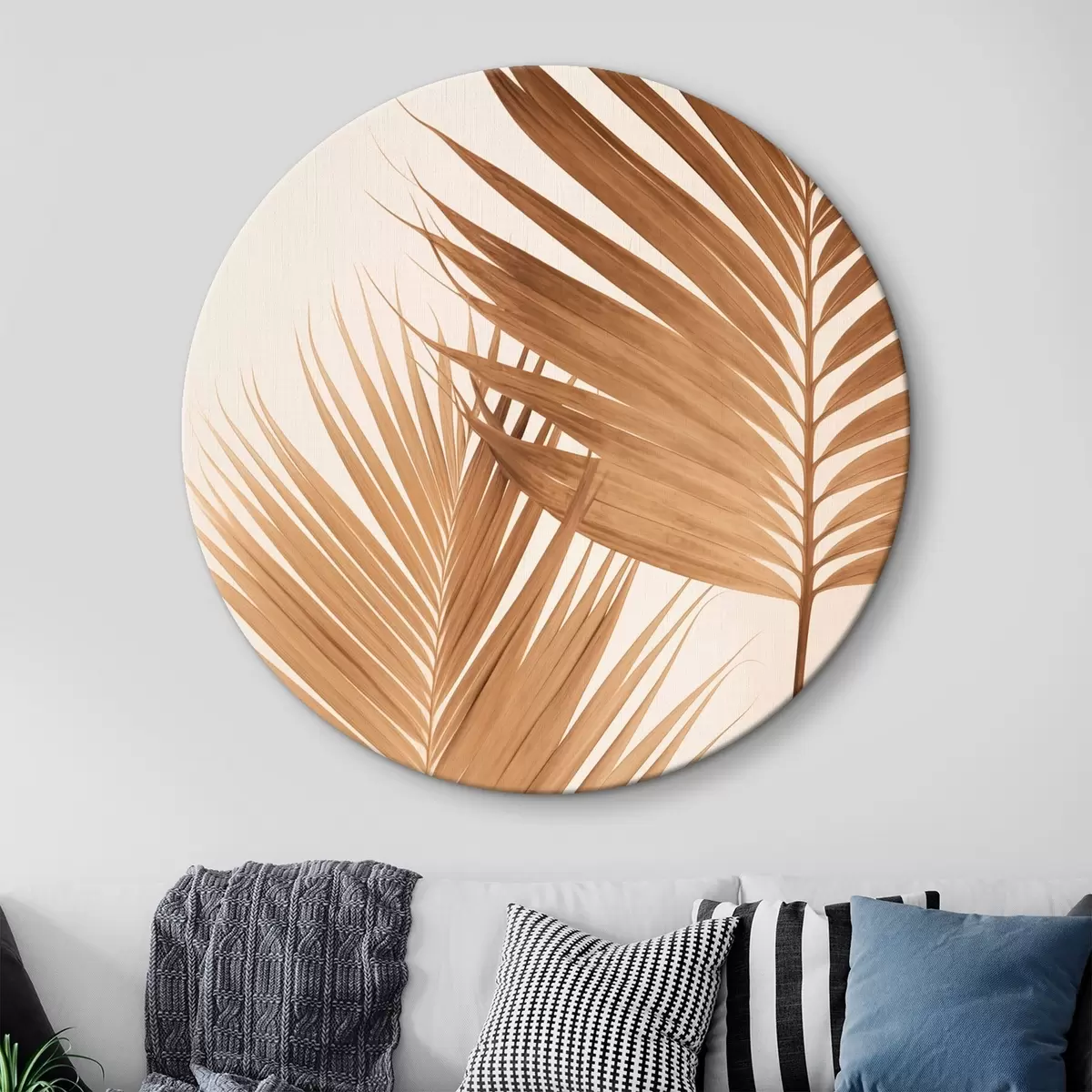 Quadri rotondi Foglie di palma nei toni del marrone, sfondo neutro, stile minimalista, illuminazione naturale, atmosfera tropicale r46274