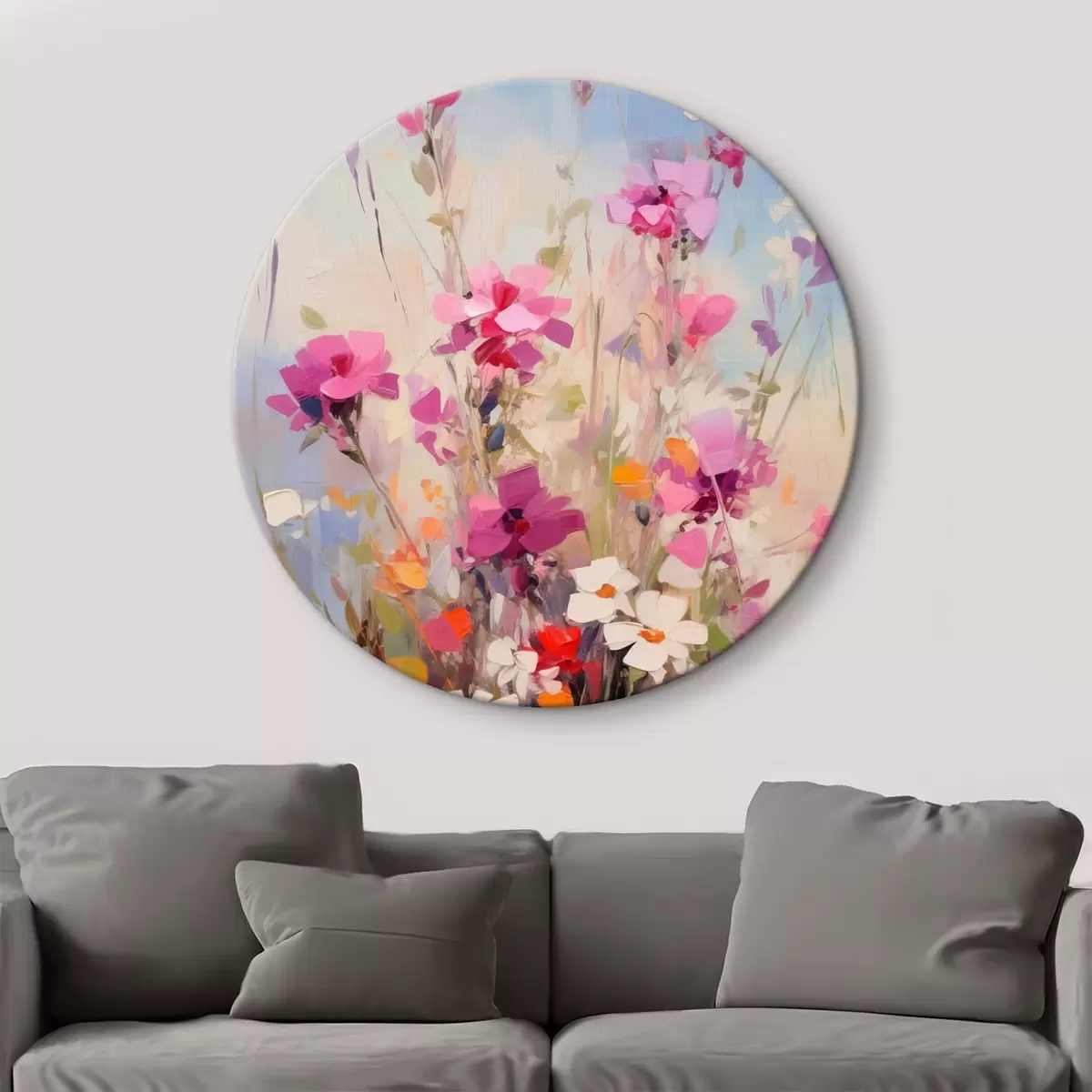 Quadri rotondi Fiori dai vivaci colori rosa, bianco e verde su uno sfondo tenue dai toni pastello r46278