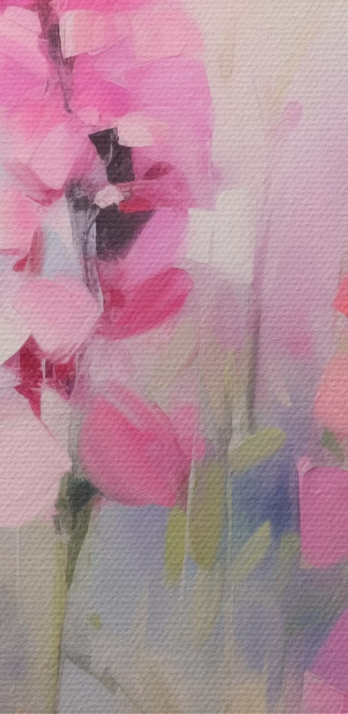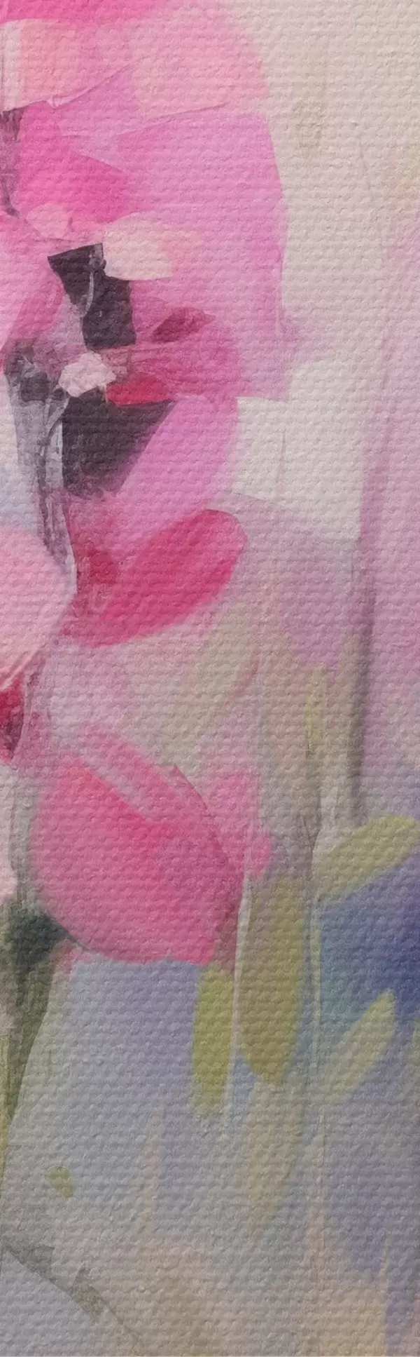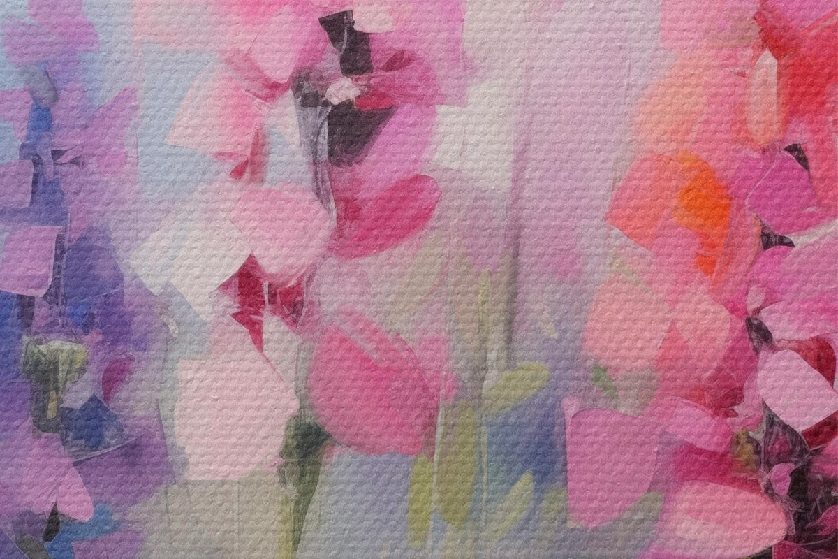 Immagine Fiori rosa e viola con margherite bianche in un campo, pennellate morbide, colori pastello, stile impressionista Nr r46279