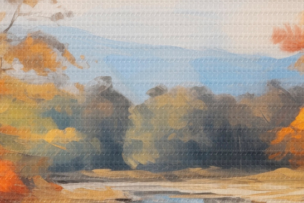 Immagine Paesaggio con un fiume che scorre attraverso una foresta in autunno, alberi gialli e arancioni, stile pittorico Nr r46281