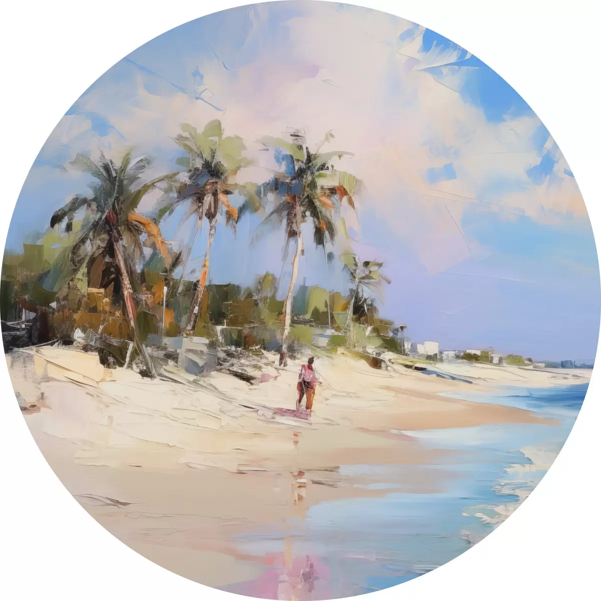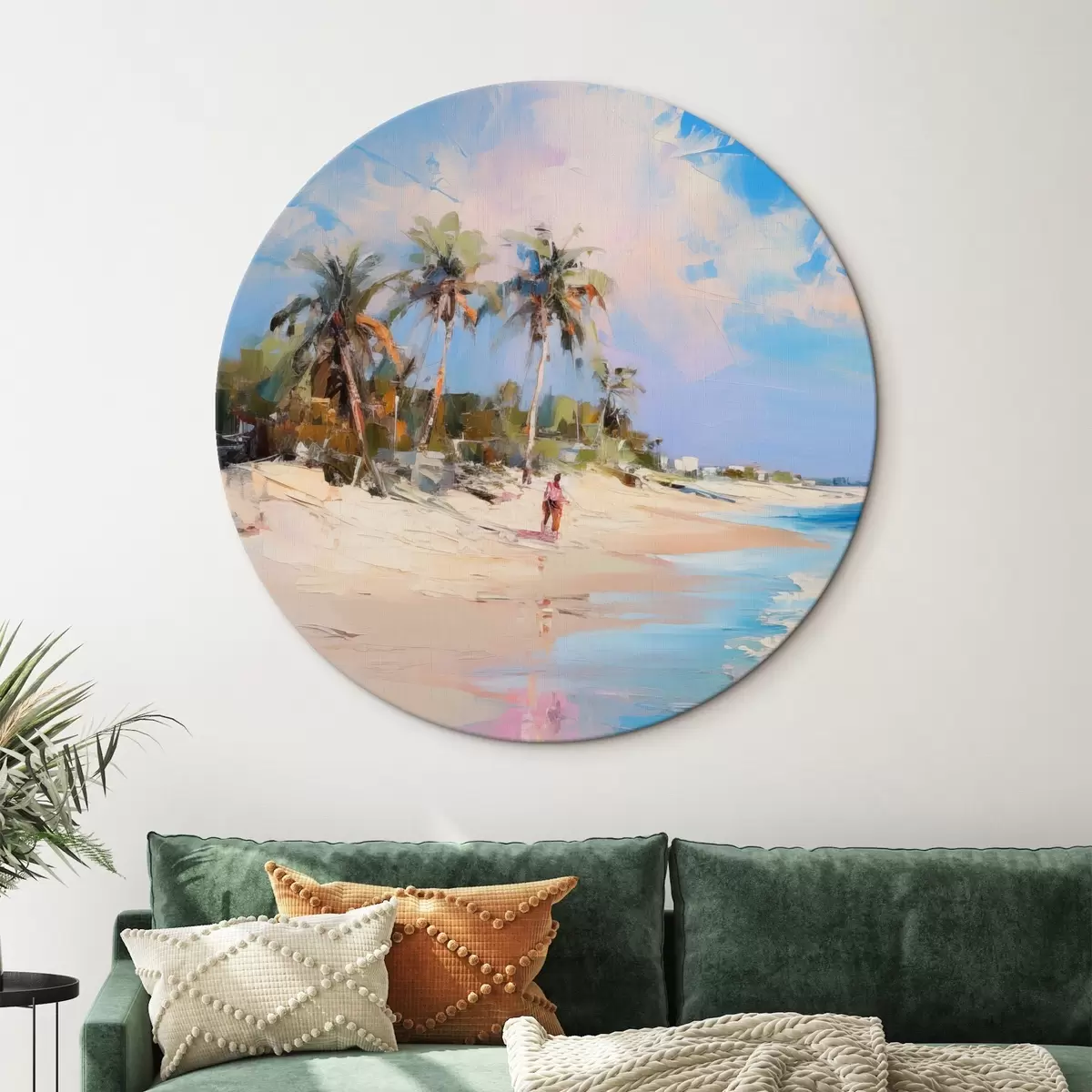 Quadri rotondi Paesaggio astratto, una spiaggia con palme, una giornata di sole splendente con cielo azzurro e qualche nuvola r46284