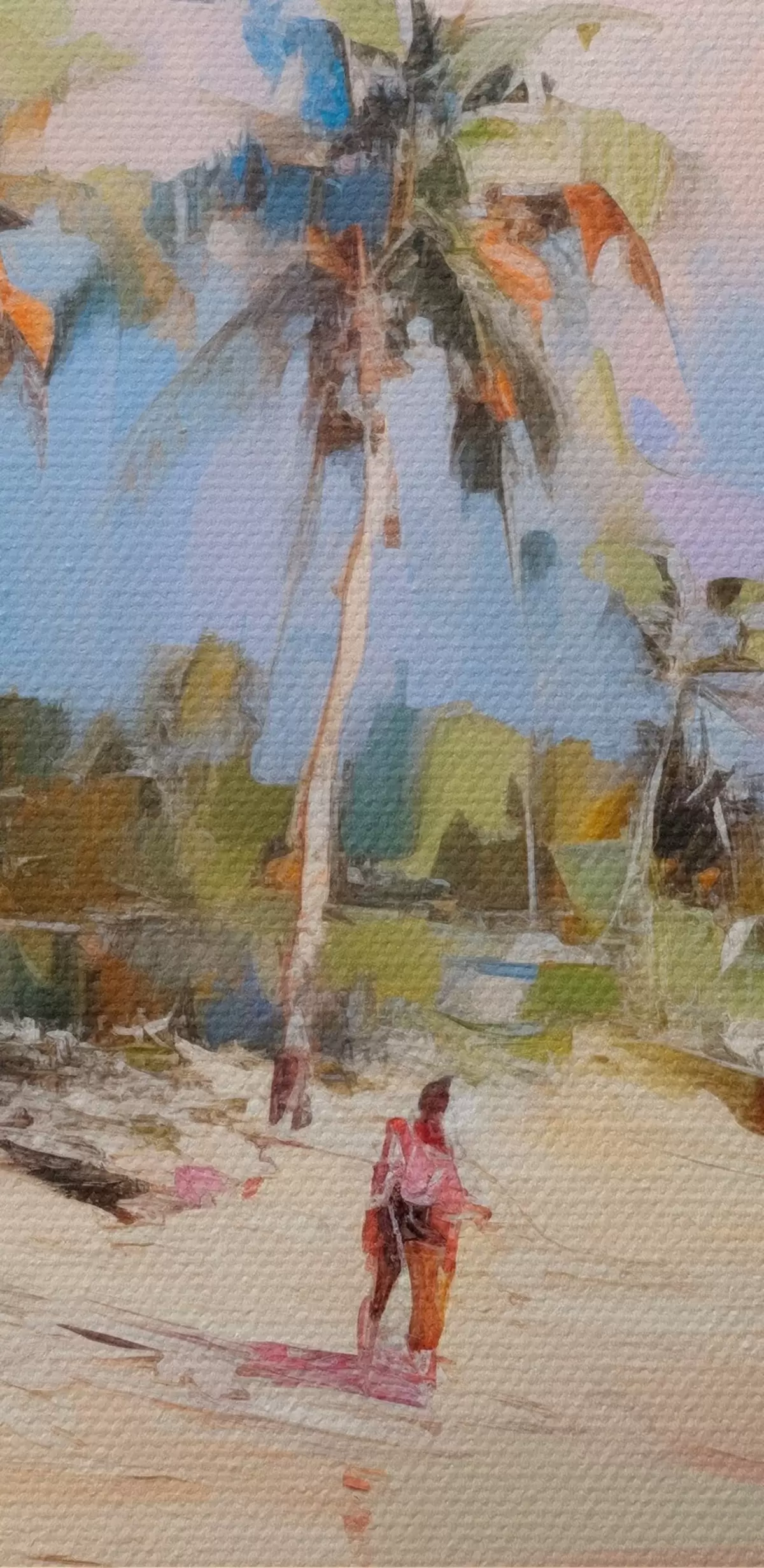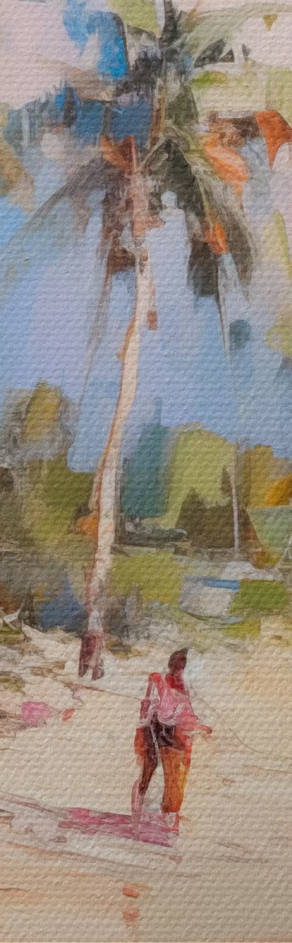 Immagine Paesaggio astratto, una spiaggia con palme, una giornata di sole splendente con cielo azzurro e qualche nuvola Nr r46284