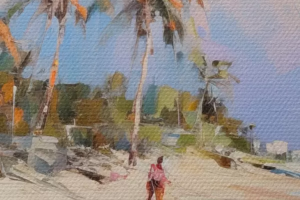 Immagine Paesaggio astratto, una spiaggia con palme, una giornata di sole splendente con cielo azzurro e qualche nuvola Nr r46284