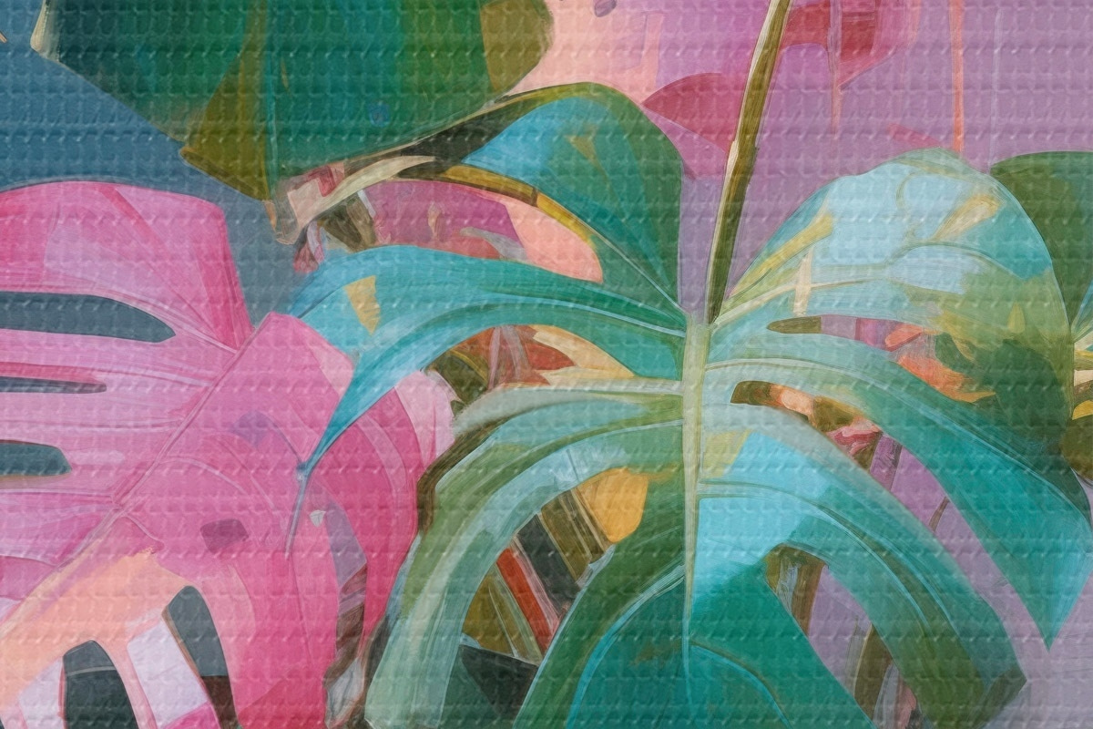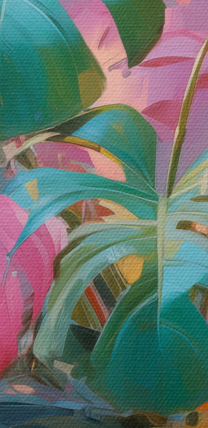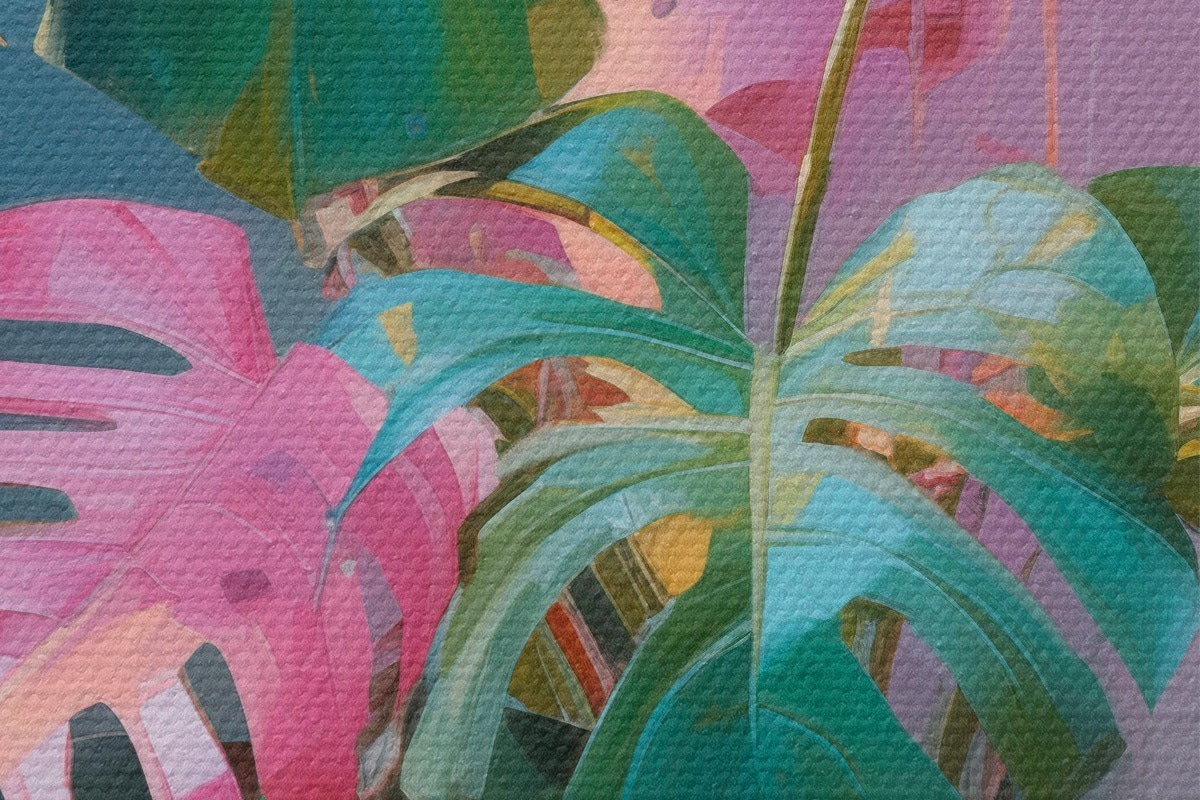 Immagine Pianta astratta di monstera con foglie rosa e verdi, colori vivaci, su sfondo sfocato Nr r46287