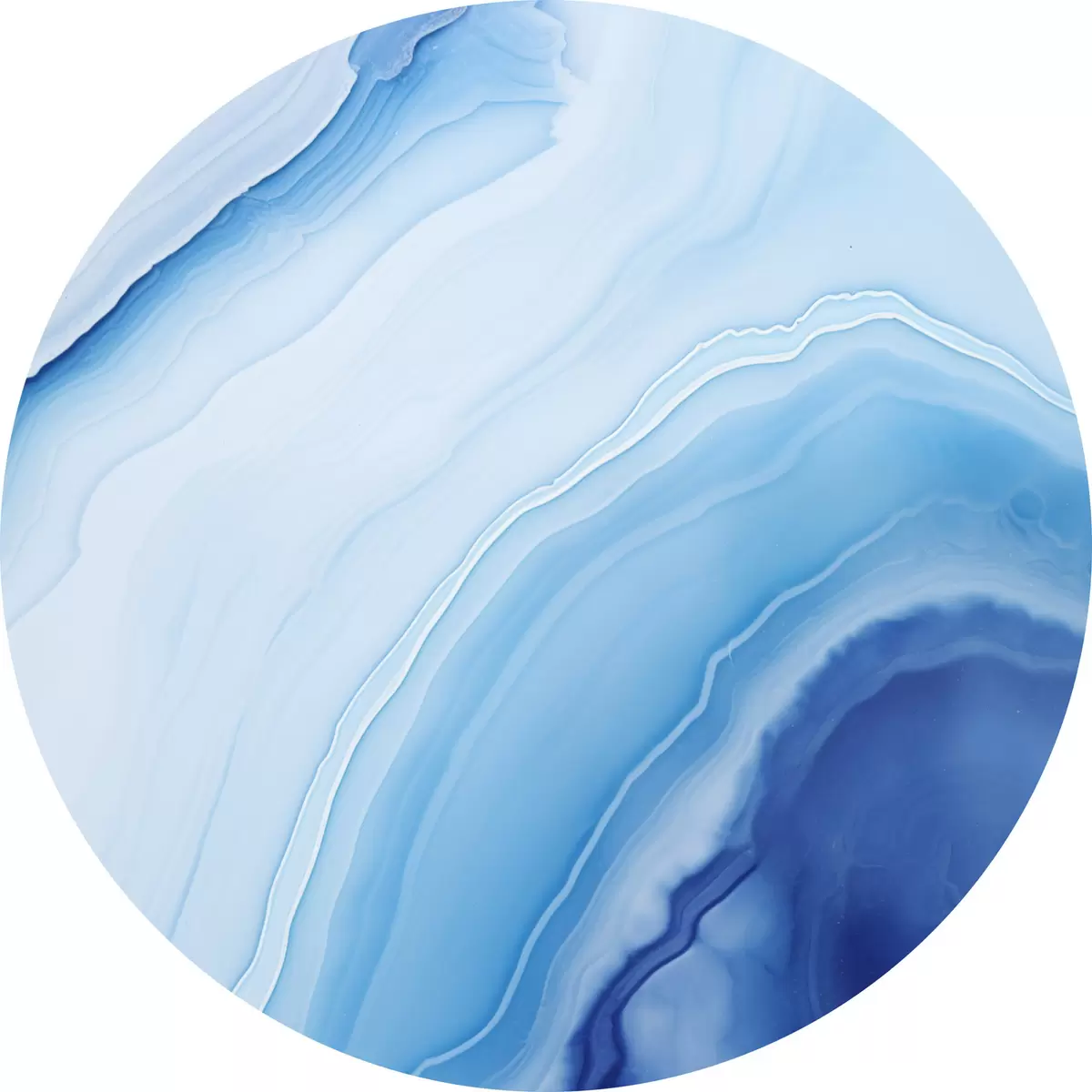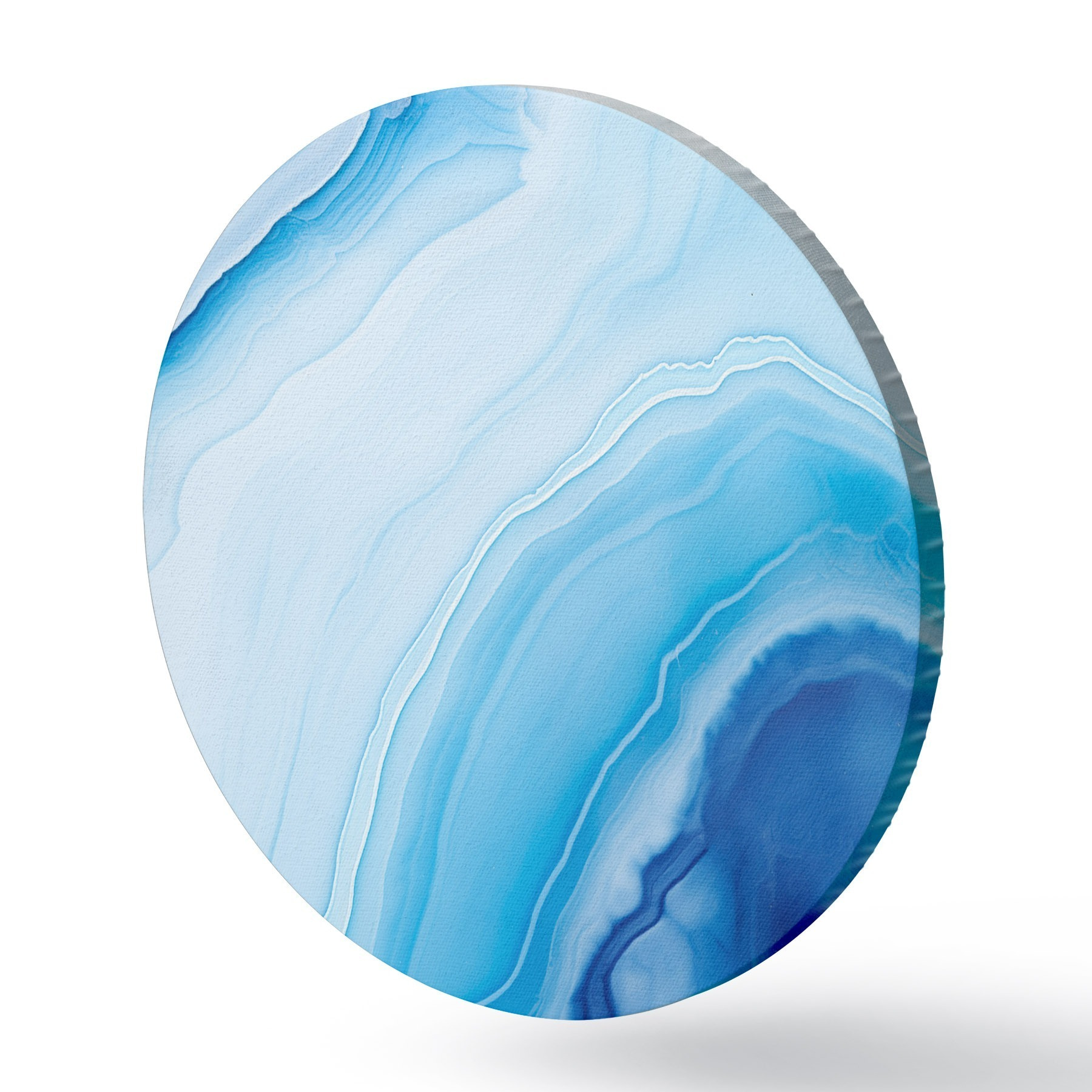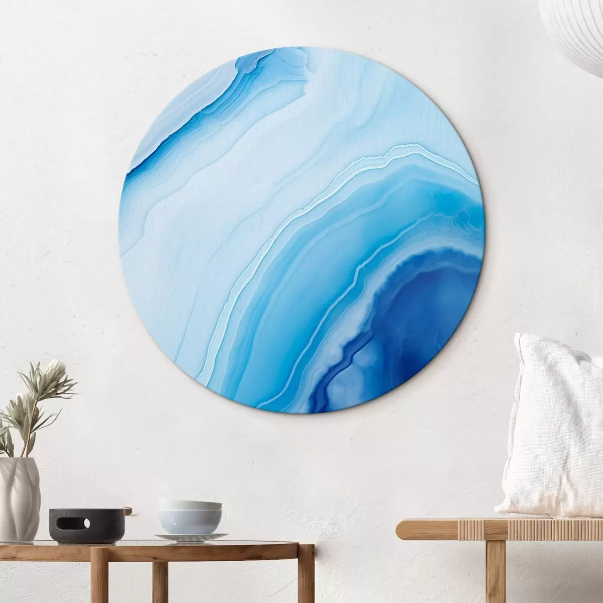 Quadri rotondi Stampa astratta blu e bianco agata, linee e sfumature vorticose, texture liscia, arte moderna, minimalista r46290