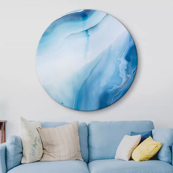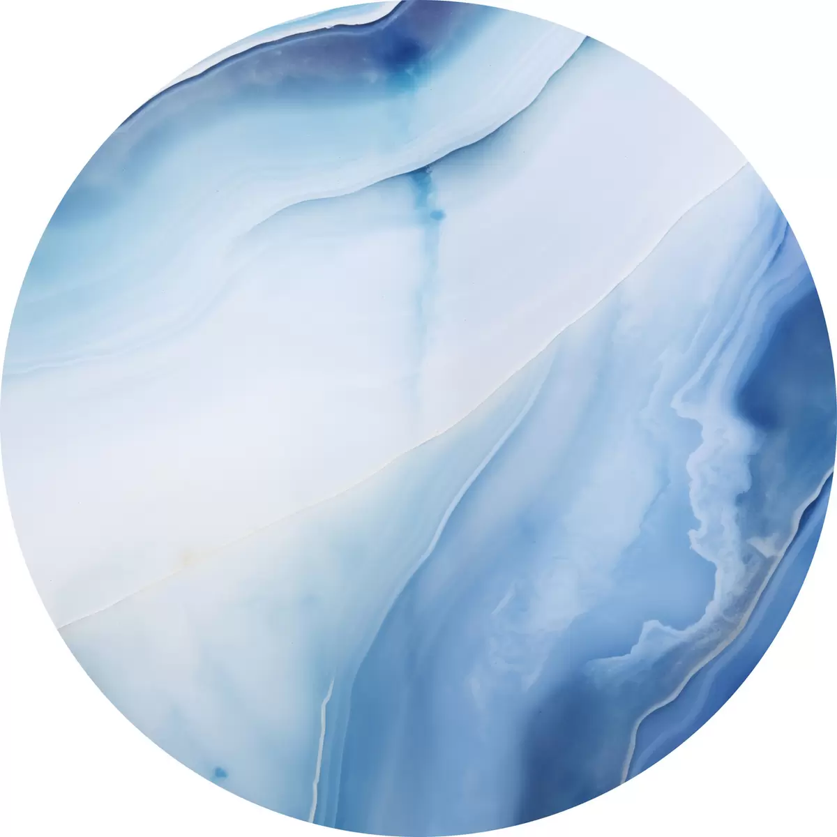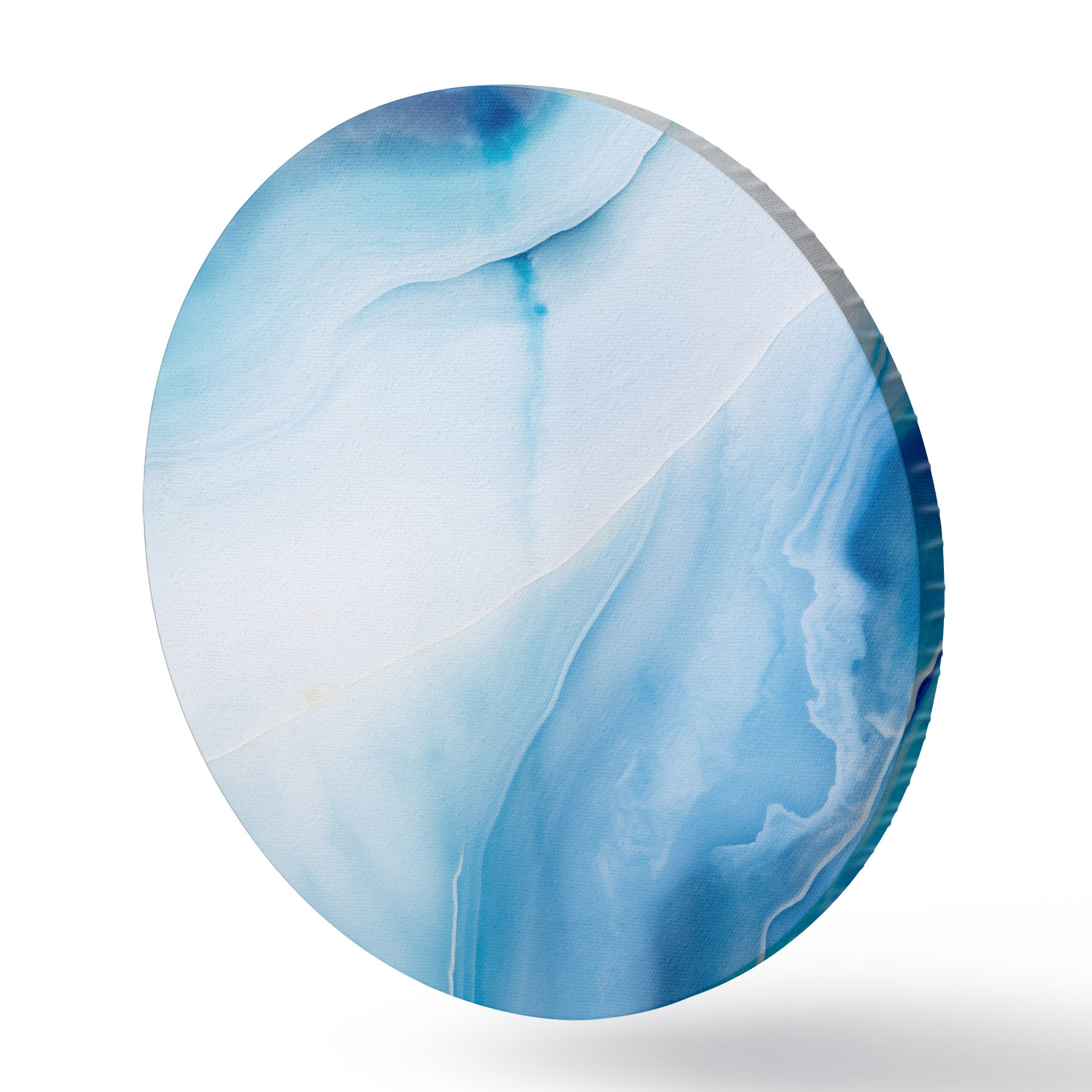 Quadri rotondi Stampa astratta blu e bianco agata, linee e sfumature vorticose, texture liscia, arte moderna, minimalista r46291