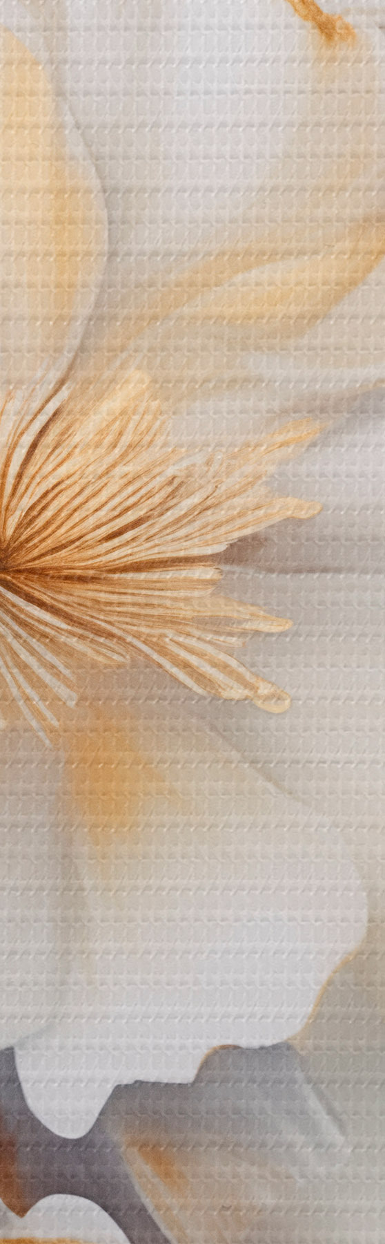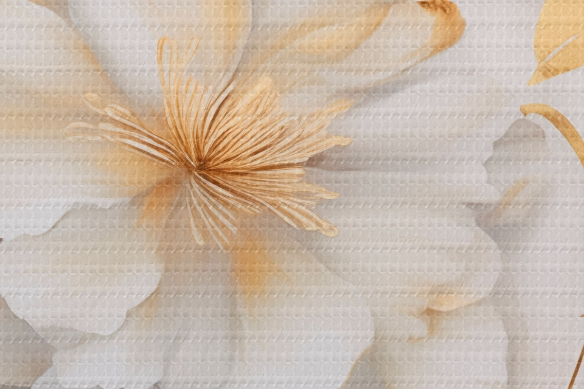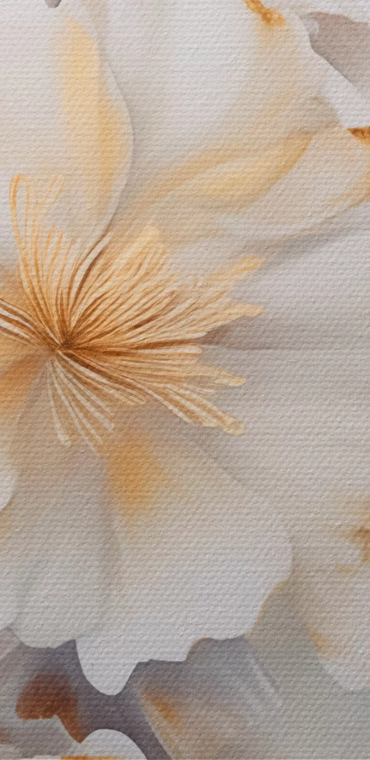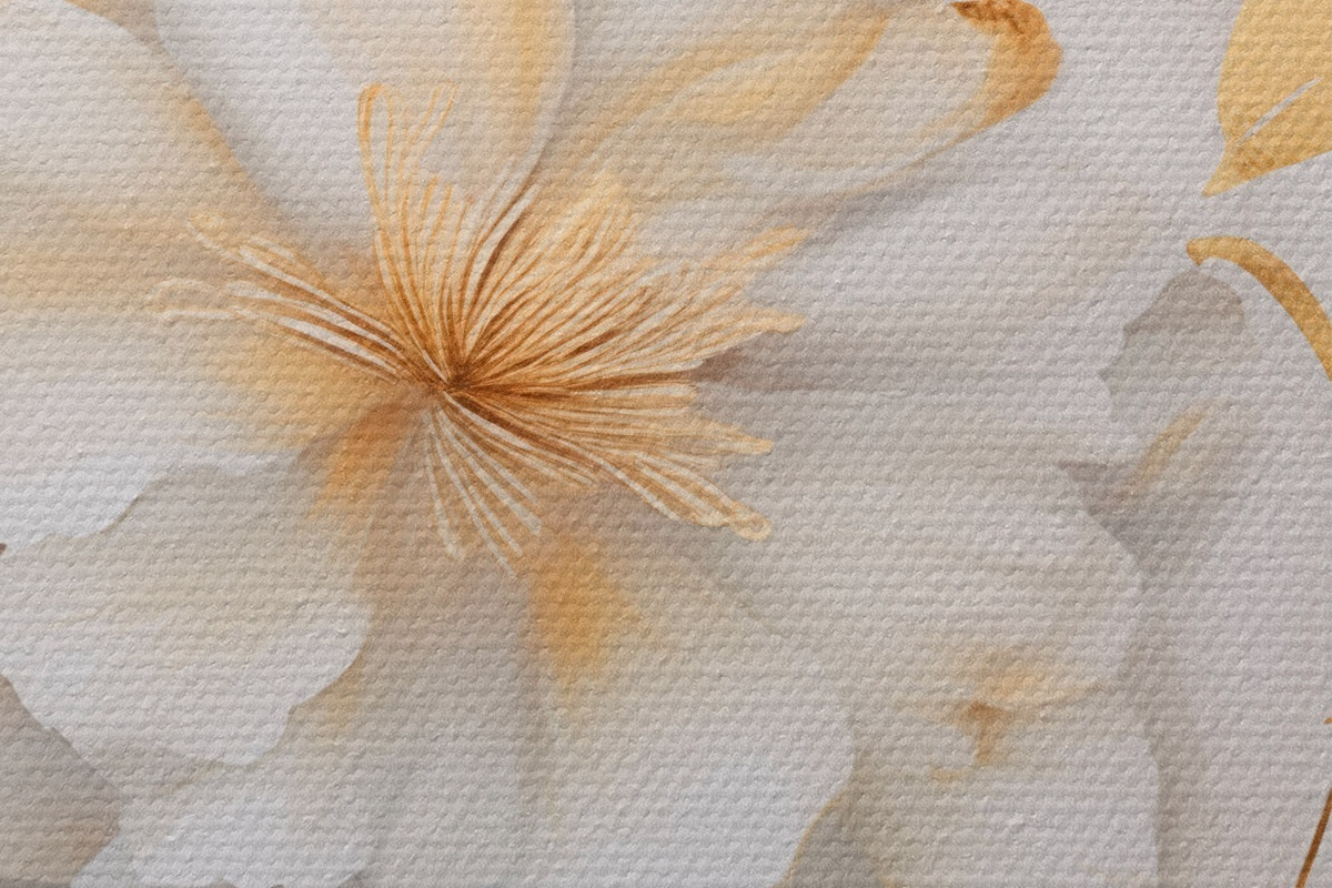 Immagine Fiori bianchi con dettagli gialli, petali con sfumature delicate, sfondo chiaro con sottile effetto marmorizzato Nr r46292