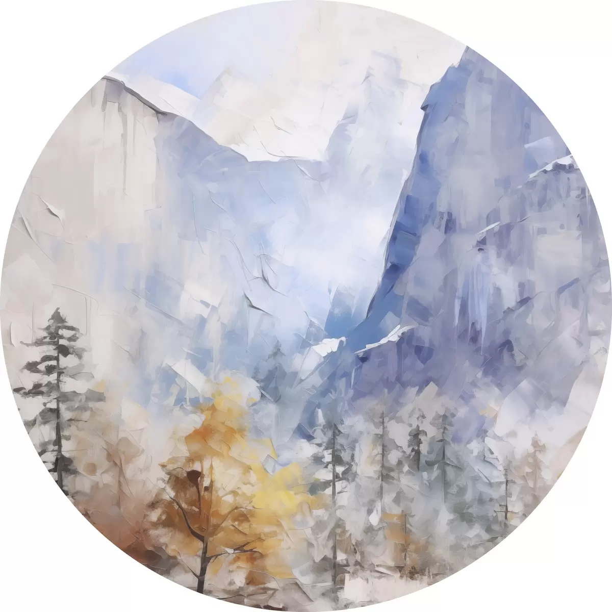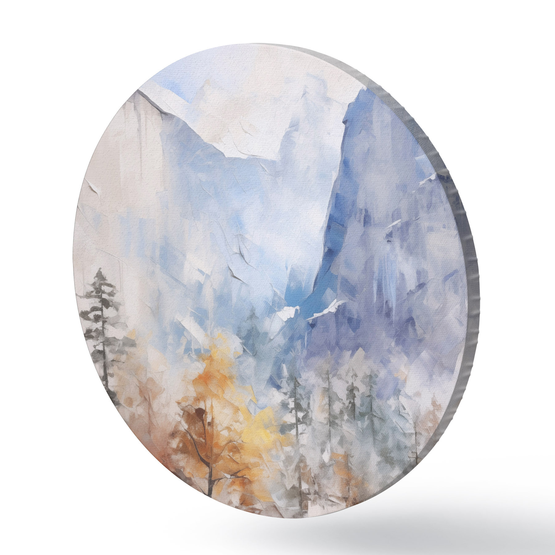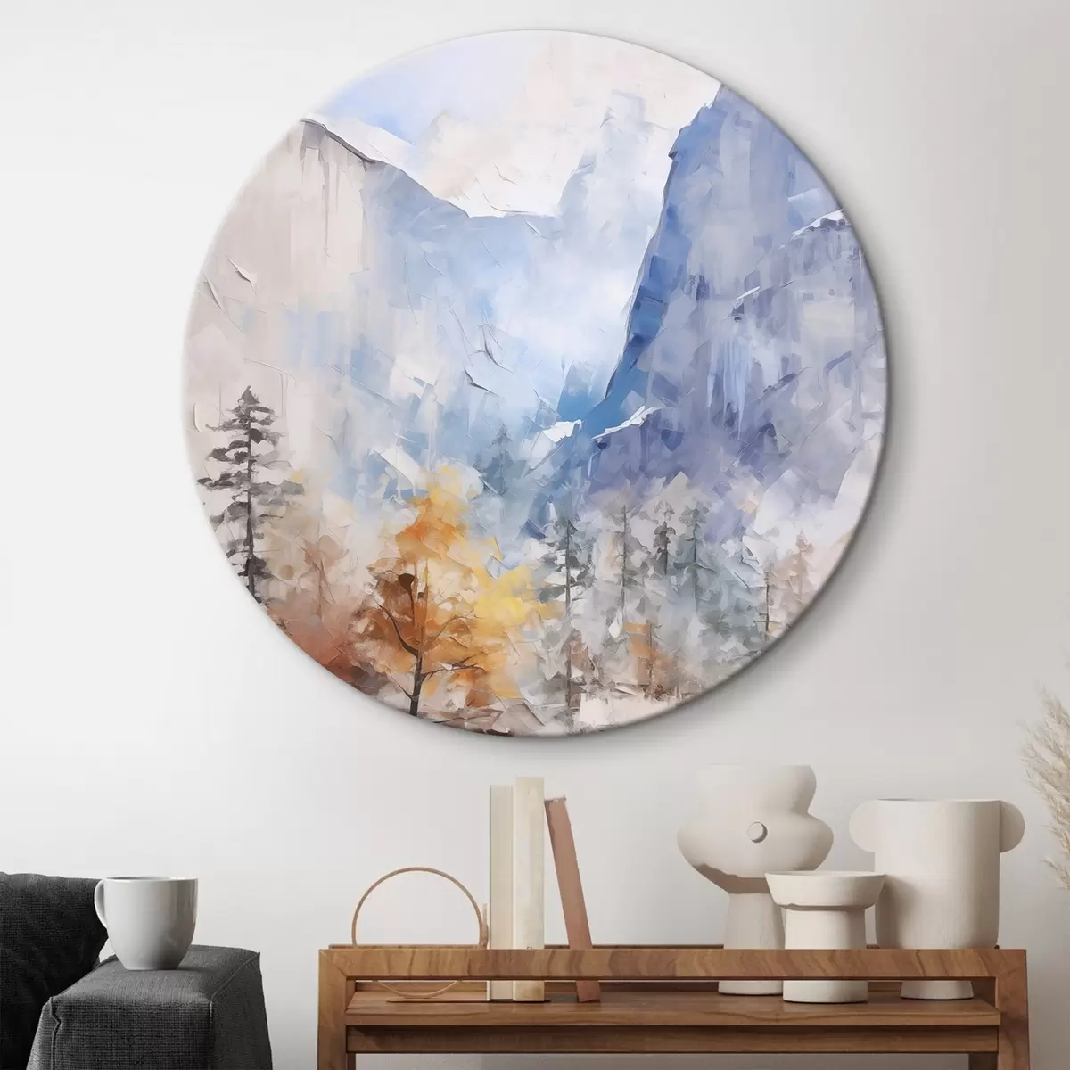 Quadri rotondi Paesaggio astratto di foresta davanti alle montagne r46298