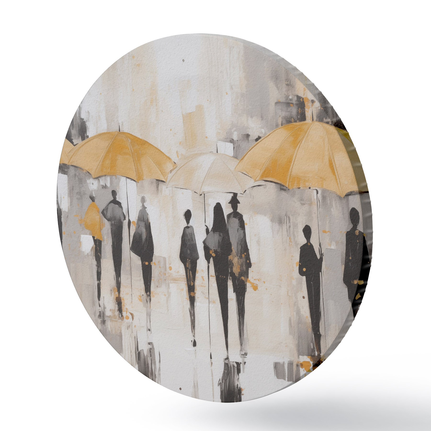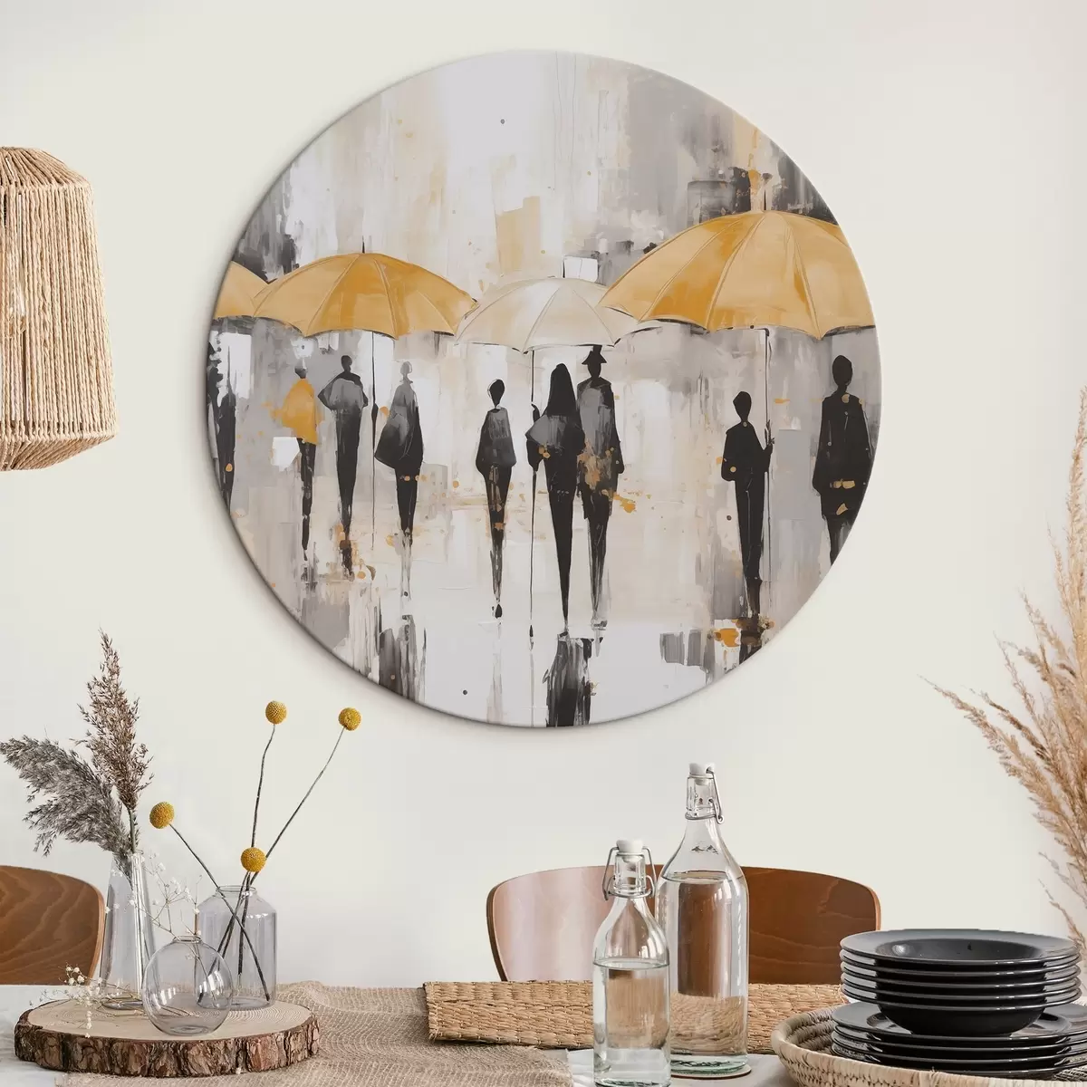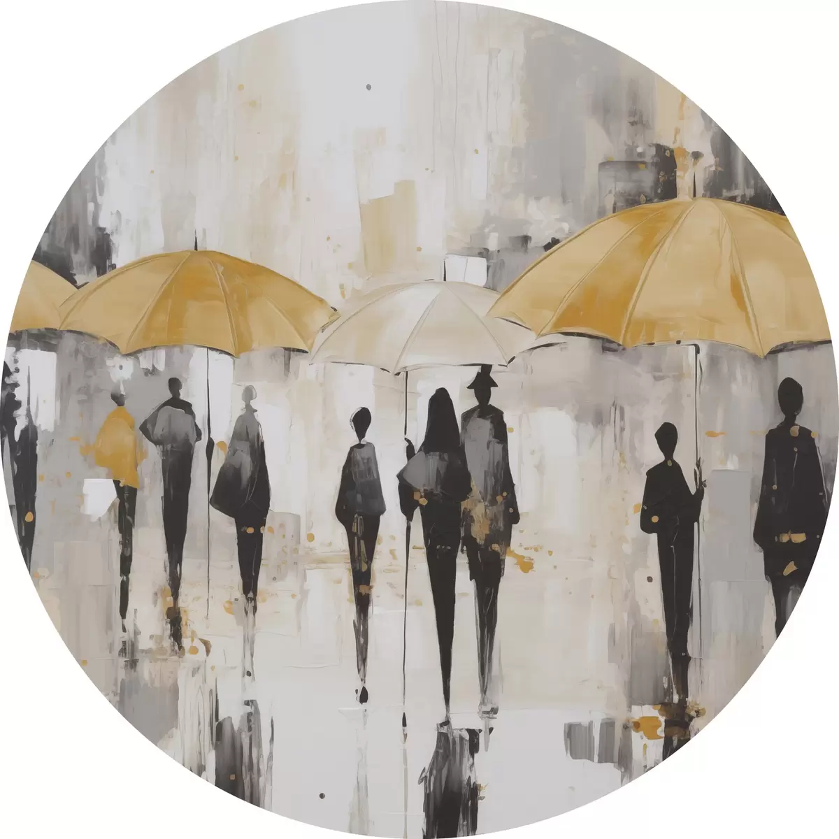 Quadri rotondi Astrazione di persone con ombrelli r46304