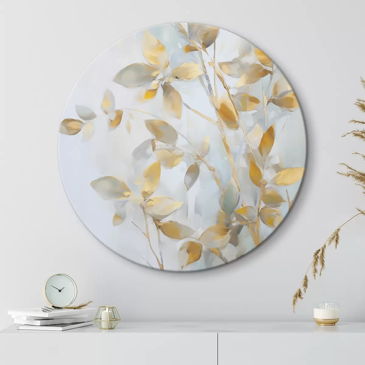 Quadri rotondi Foglie astratte imitazione di pittura r46348