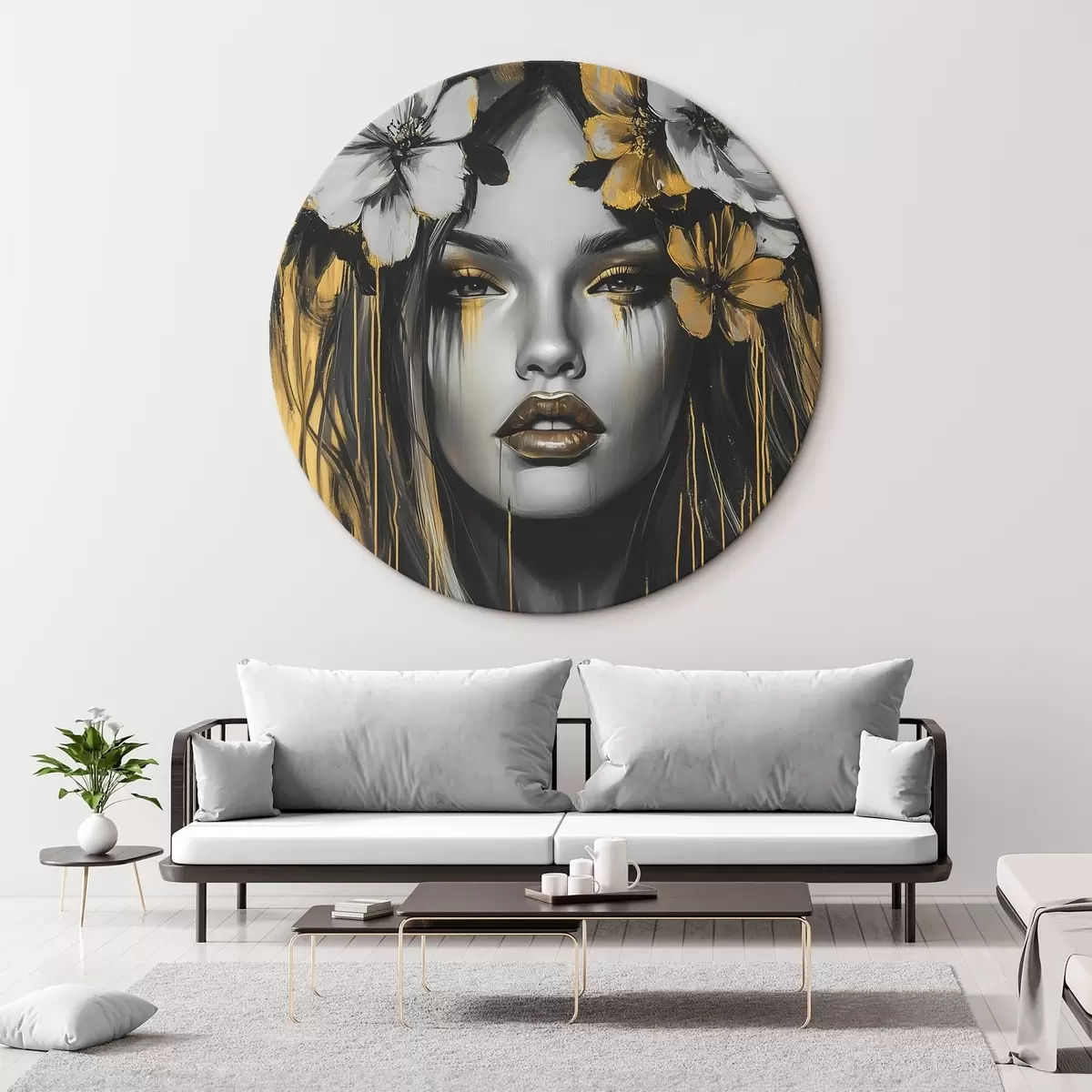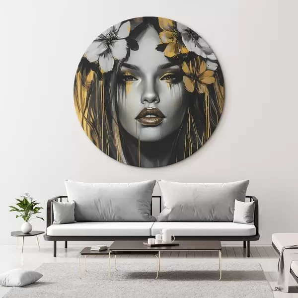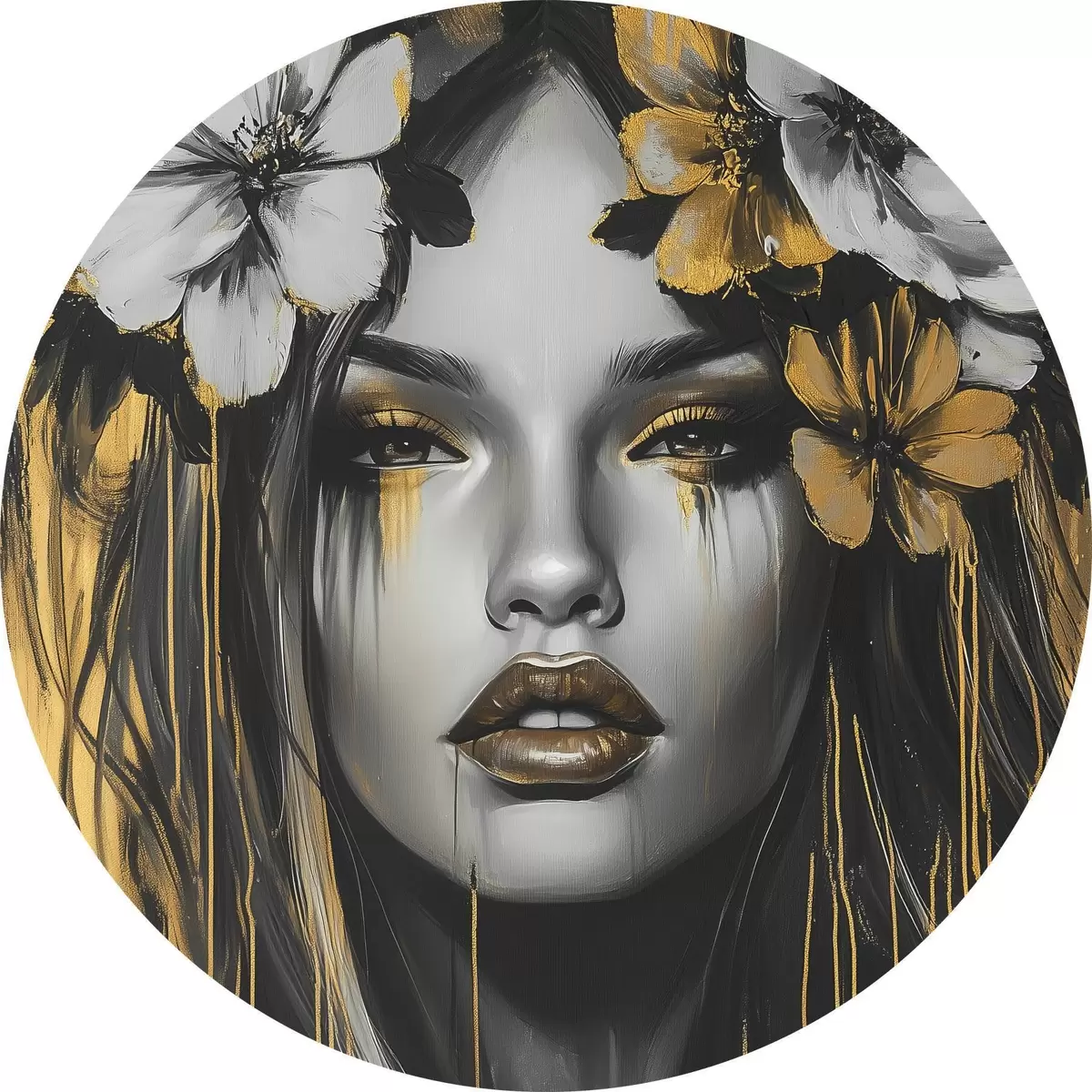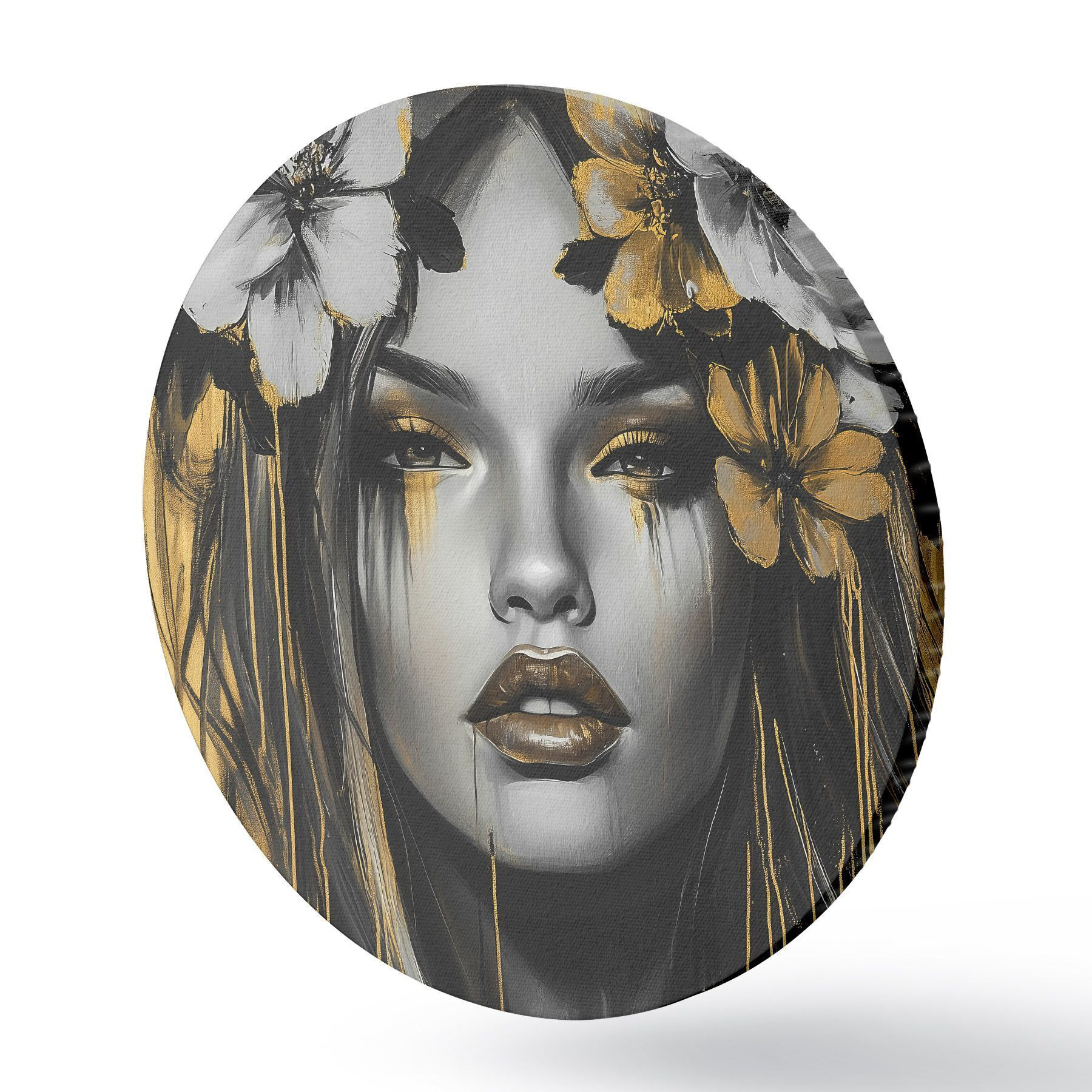Quadri rotondi Ritratto astratto di una donna con fiori r46454