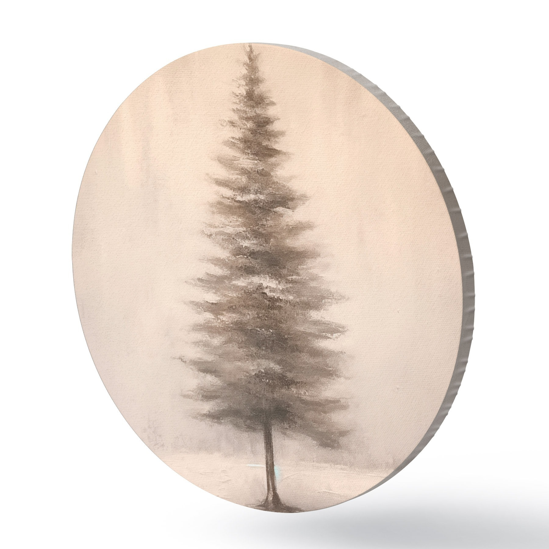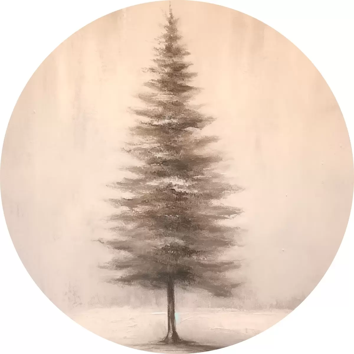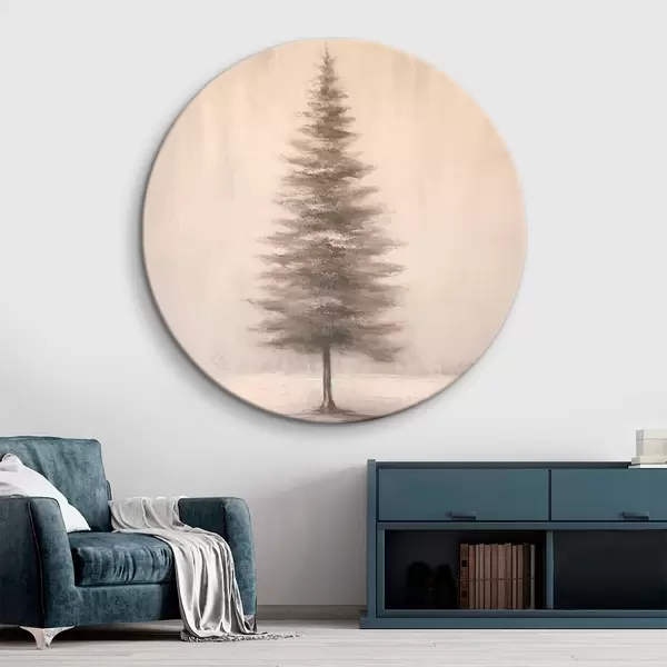Quadri rotondi Abete monocromatico. Paesaggio invernale minimalista r46465