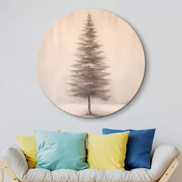 Quadri rotondi Abete monocromatico. Paesaggio invernale minimalista r46465
