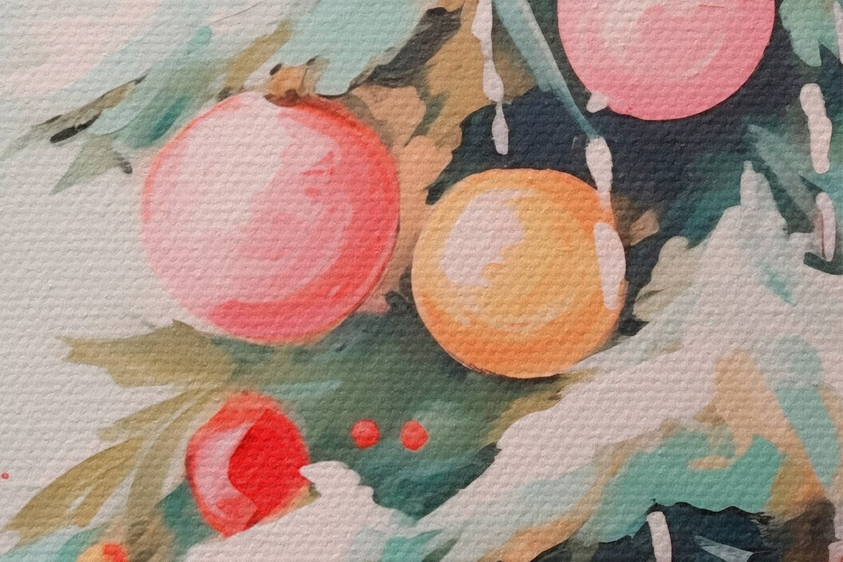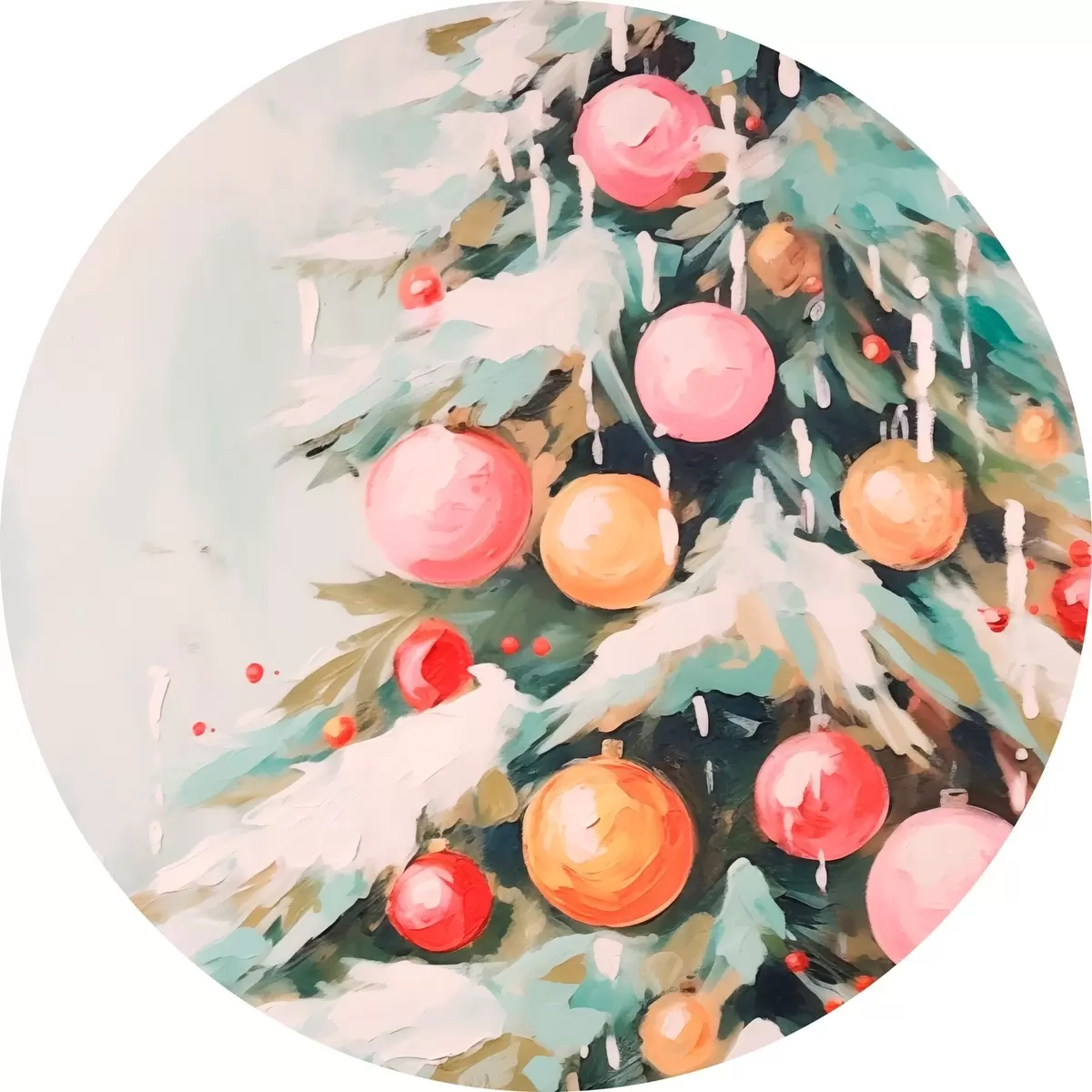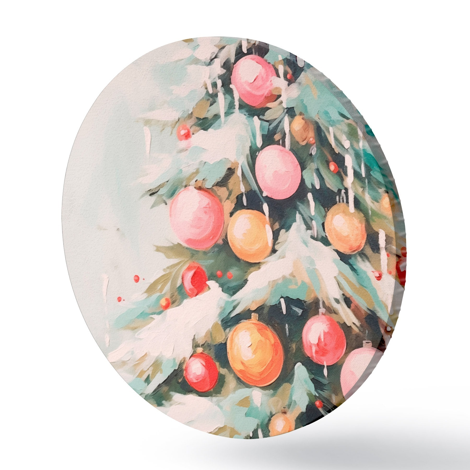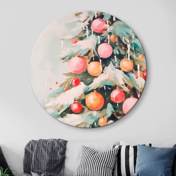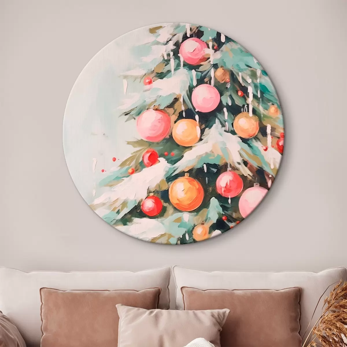 Quadri rotondi Albero di Natale con neve e palline rosa r46480