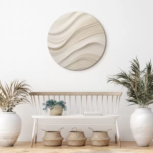 Quadri rotondi Onde in rilievo a strati color sabbia, texture morbida r46484