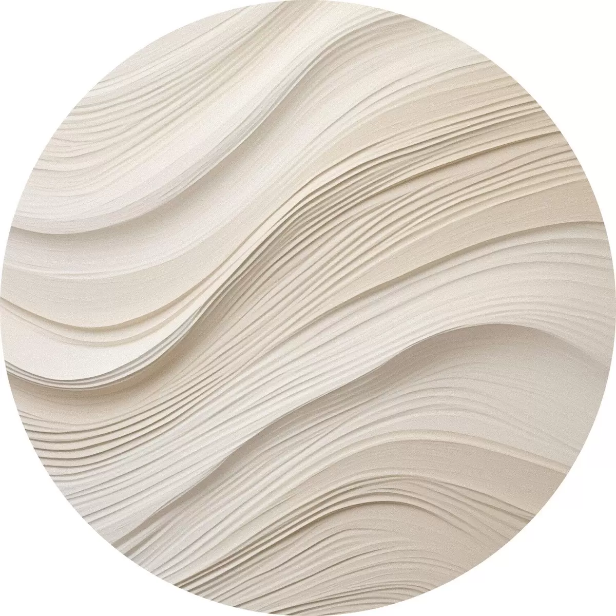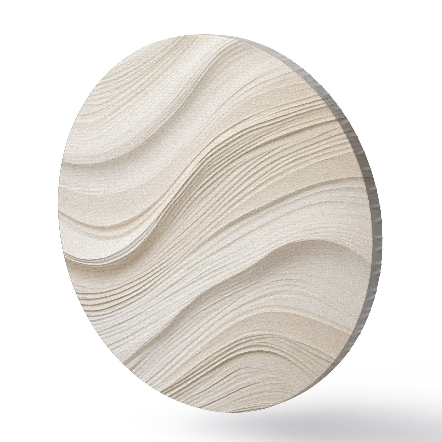 Quadri rotondi Onde in rilievo a strati color sabbia, texture morbida r46484